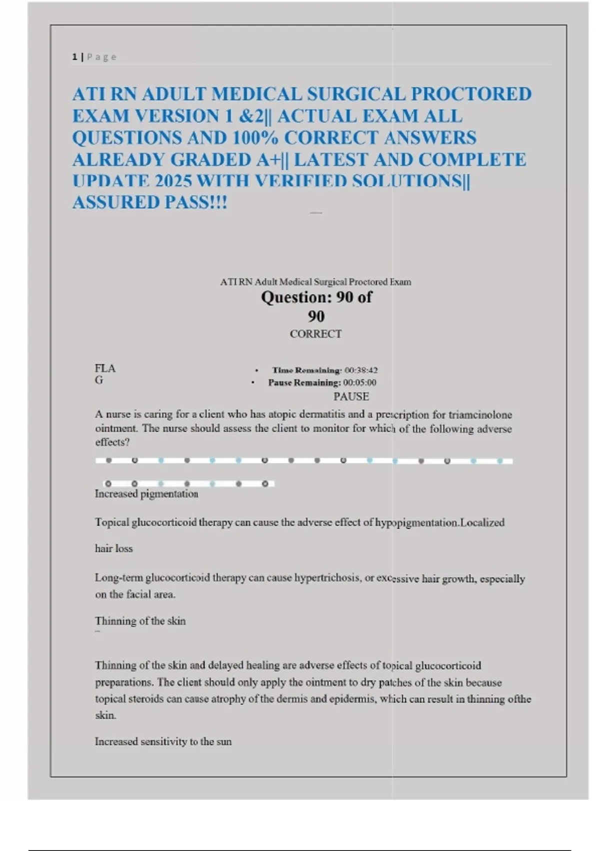 ATI RN ADULT MEDICAL SURGICAL PROCTORED EXAM VERSION 1 &2|| ACTUAL EXAM ALL QUESTIONS AND 100% CORRECT ANSWERS ALREADY GRADED A+|| LATEST AND COMPLETE UPDATE 2025 WITH VERIFIED SOLUTIONS||