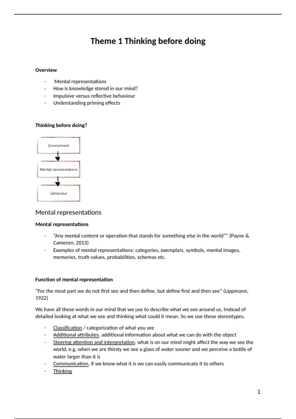 - Examples of mental representations: categories, exemplars, symbols, mental images,