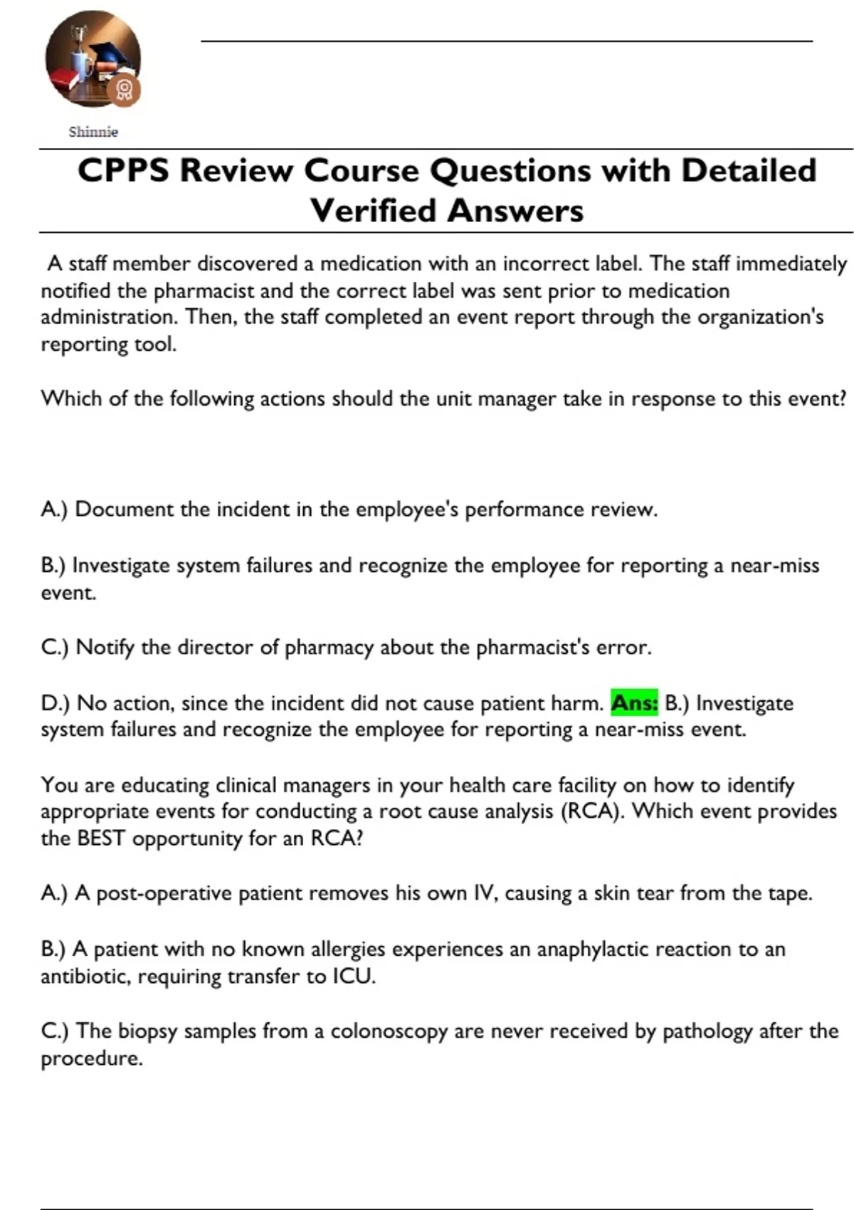 D.) No action, since the incident did not cause patient harm. Ans: B.) Investigate