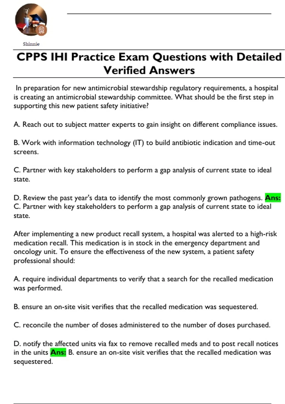 CPPS IHI Practice Exam Questions with Detailed Verified Answers