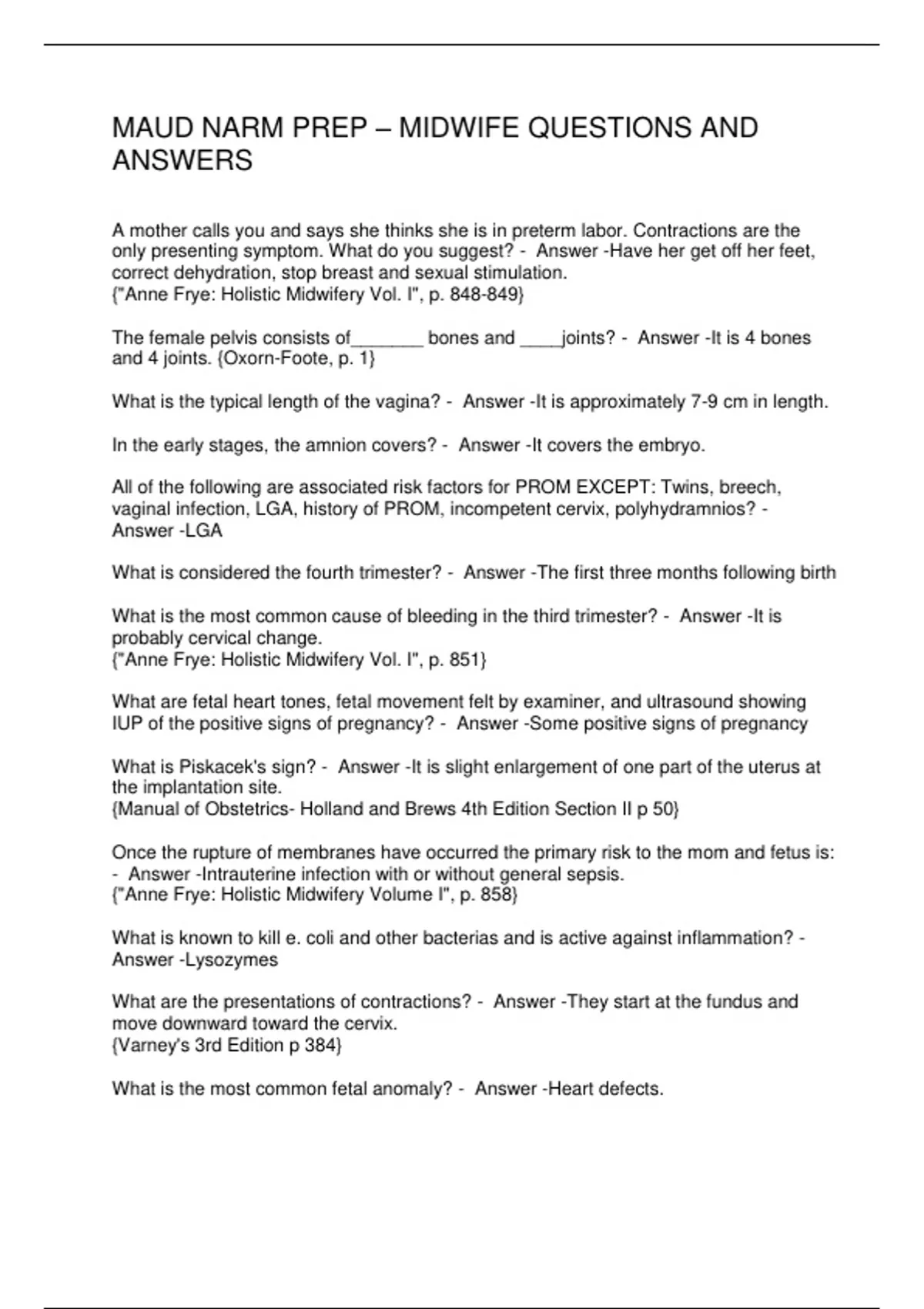 MAUD NARM PREP – MIDWIFE QUESTIONS AND