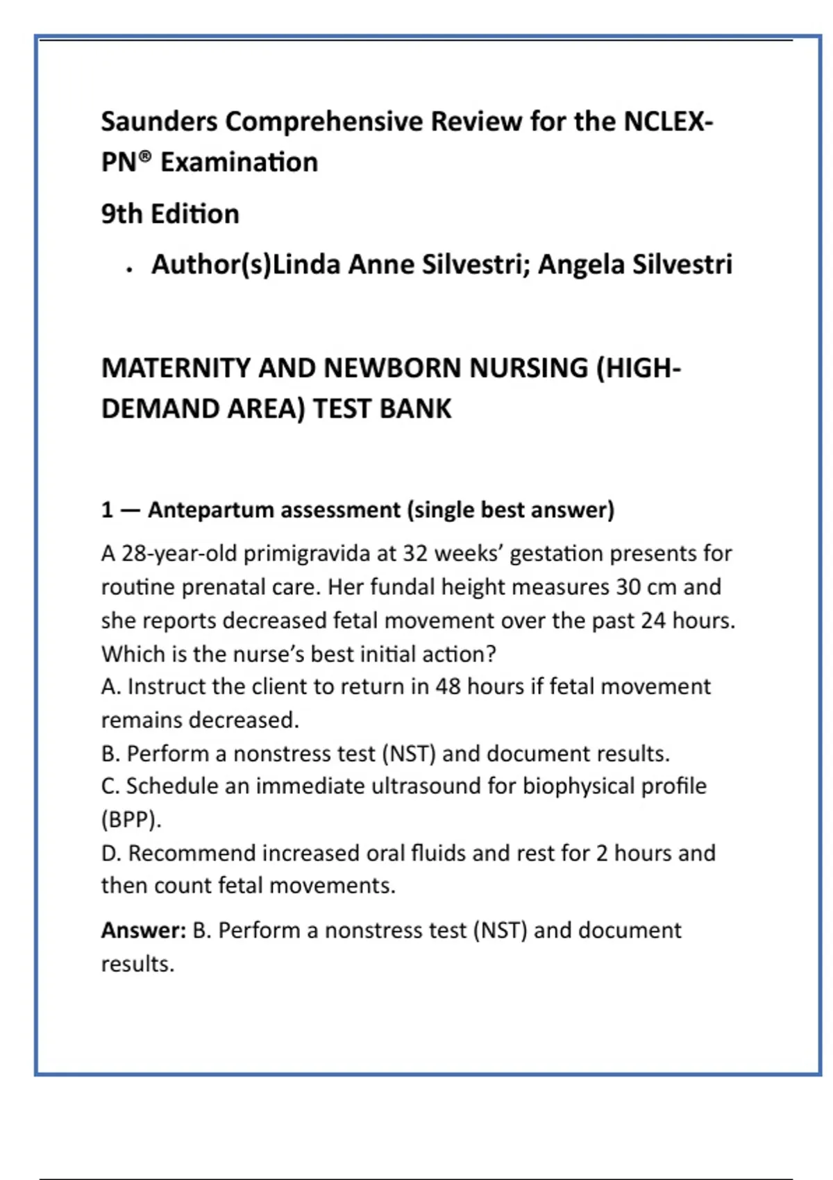 MATERNITY AND NEWBORN NURSING (HIGH-