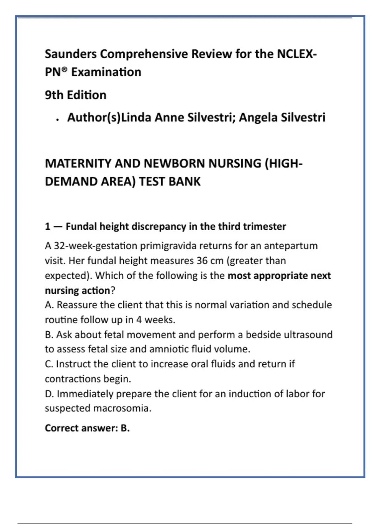 MATERNITY AND NEWBORN NURSING (HIGH-