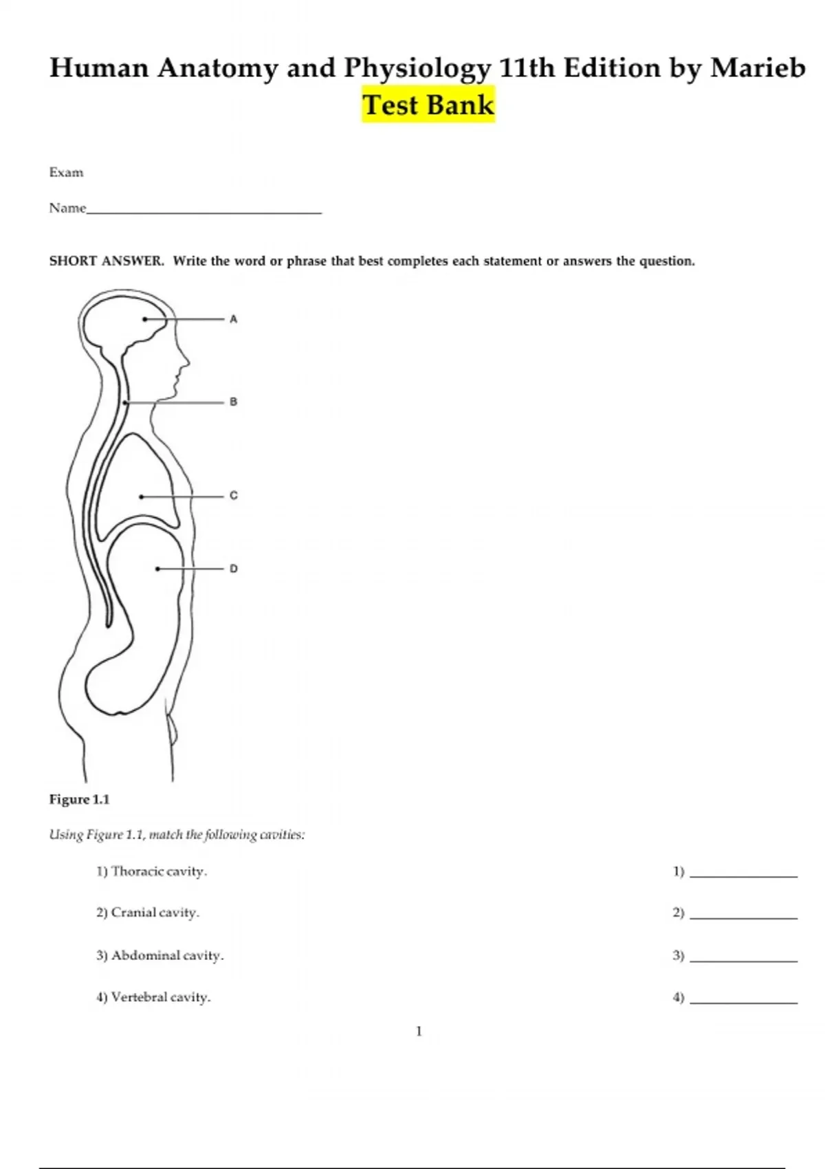 Access the complete Test Bank for Human Anatomy and Physiology, 11th Edition by Marieb. Includes detailed chapter-by-chapter multiple-choice, true/false, and short-answer questions with verified answers—ideal for nursing, pre-med, and health science students preparing for exams and quizzes.