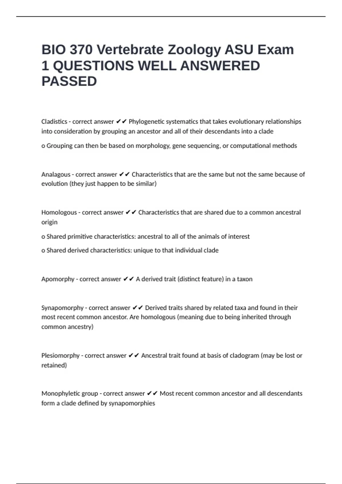 Homologous - correct answer ✔✔ Characteristics that are shared due to a common ancestral