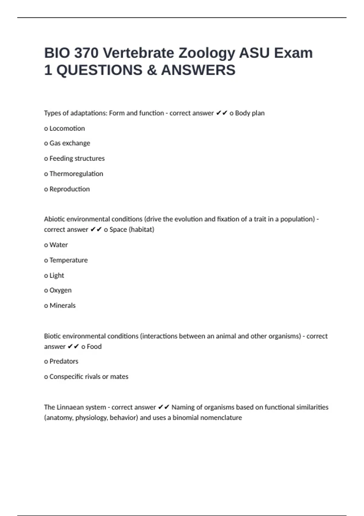 Types of adaptations: Form and function - correct answer ✔✔ o Body plan