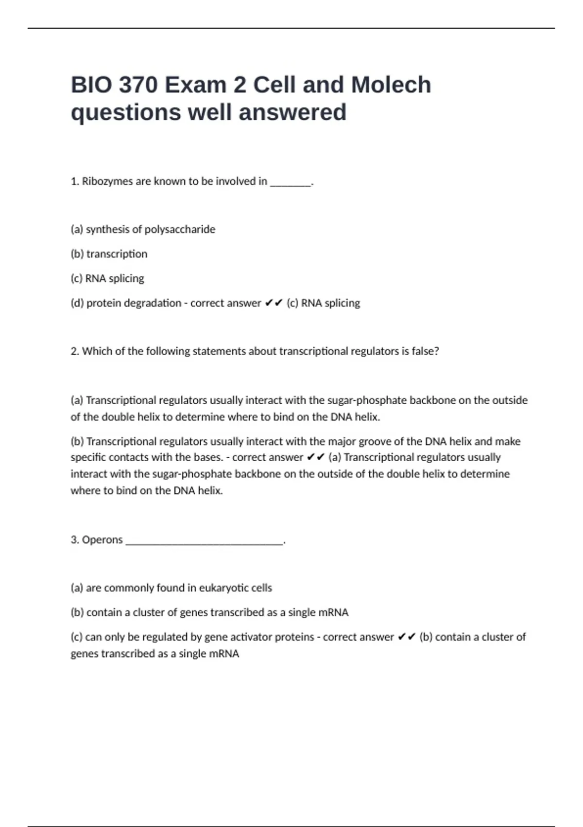 (c) can only be regulated by gene activator proteins - correct answer ✔✔ (b) contain a cluster of