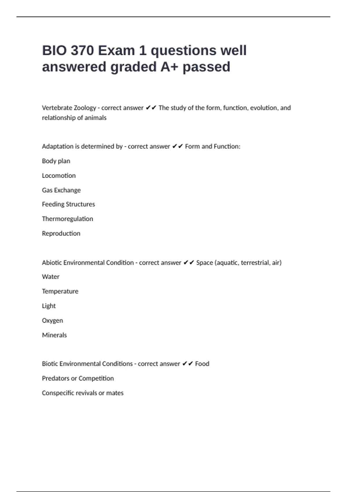 Vertebrate Zoology - correct answer ✔✔ The study of the form, function, evolution, and