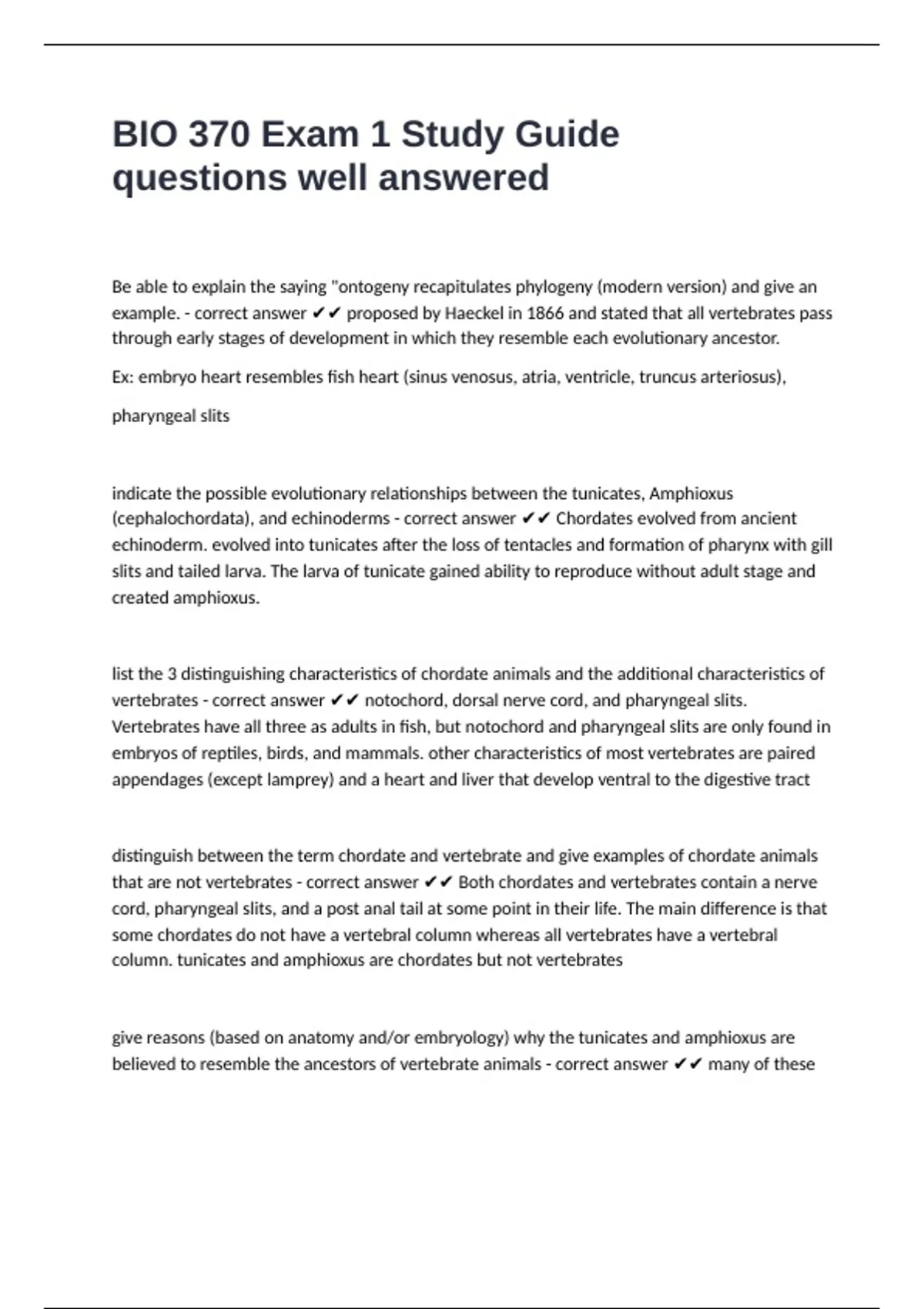 BIO 370 Exam 1 Study Guide questions well answered