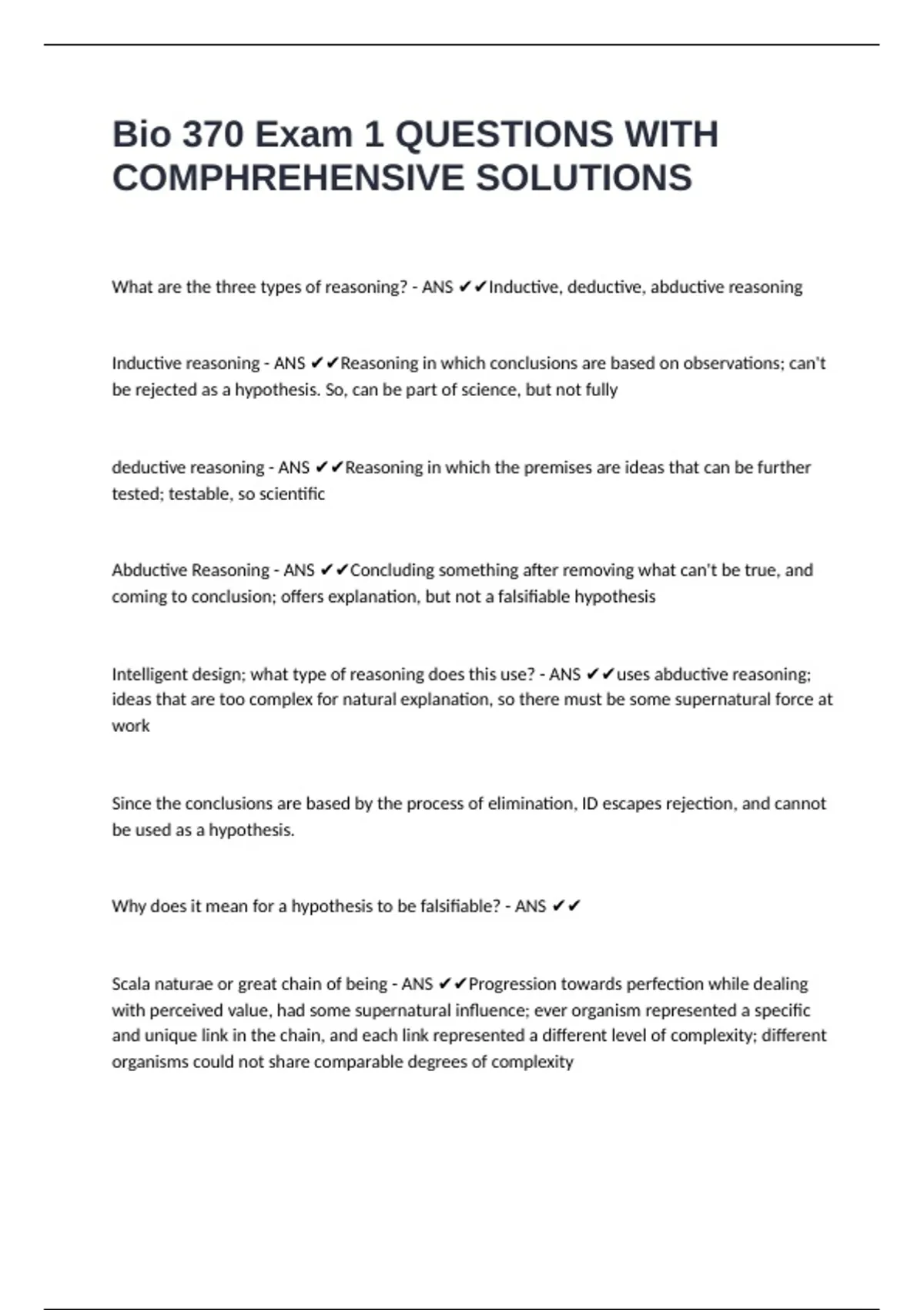 Bio 370 Exam 1 QUESTIONS WITH COMPHREHENSIVE SOLUTIONS