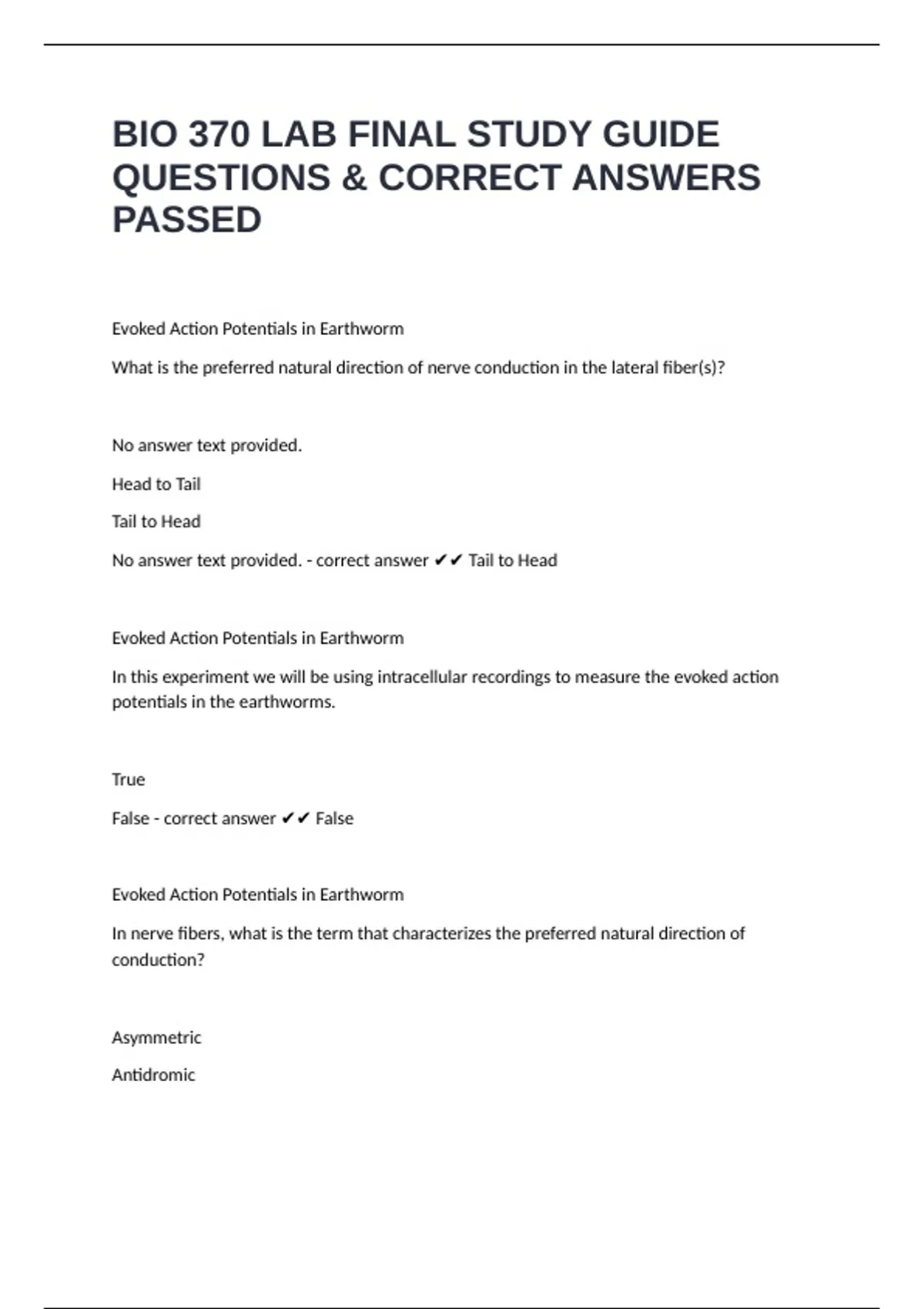 No answer text provided. - correct answer ✔✔ Tail to Head