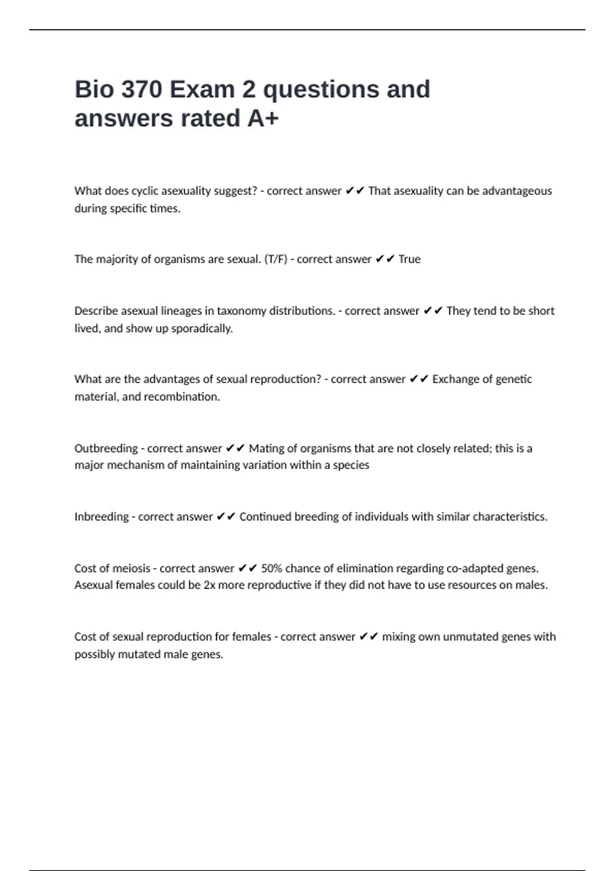 Cost of sexual reproduction for females - correct answer ✔✔ mixing own unmutated genes with
