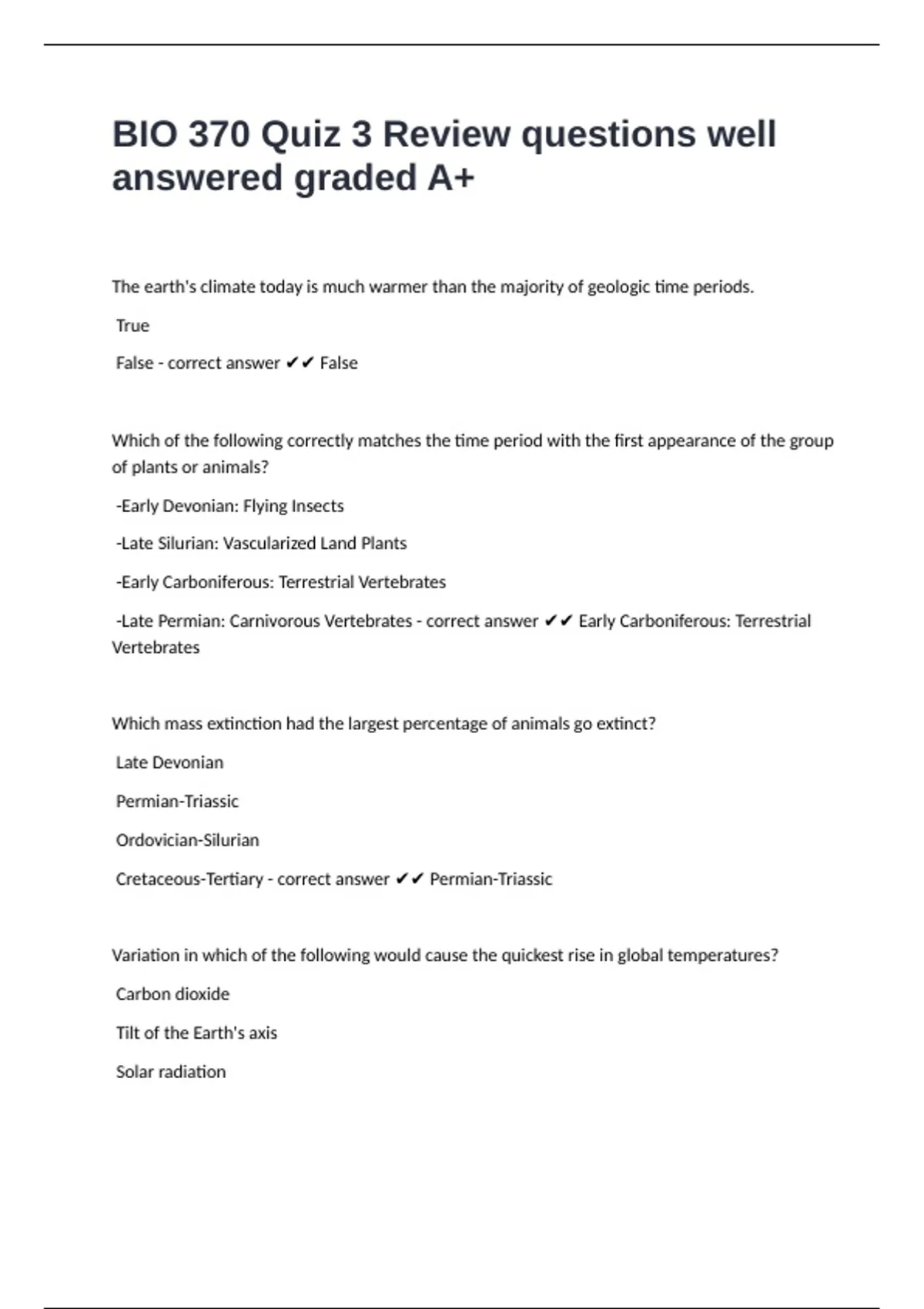 -Late Permian: Carnivorous Vertebrates - correct answer ✔✔ Early Carboniferous: Terrestrial