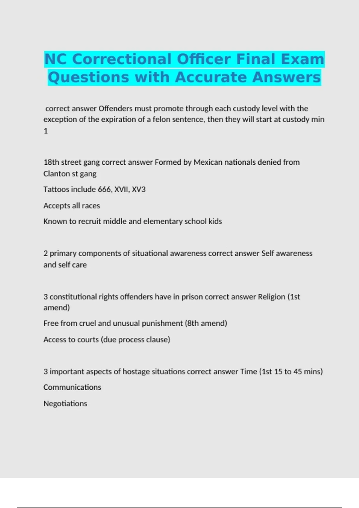 correct answer Offenders must promote through each custody level with the