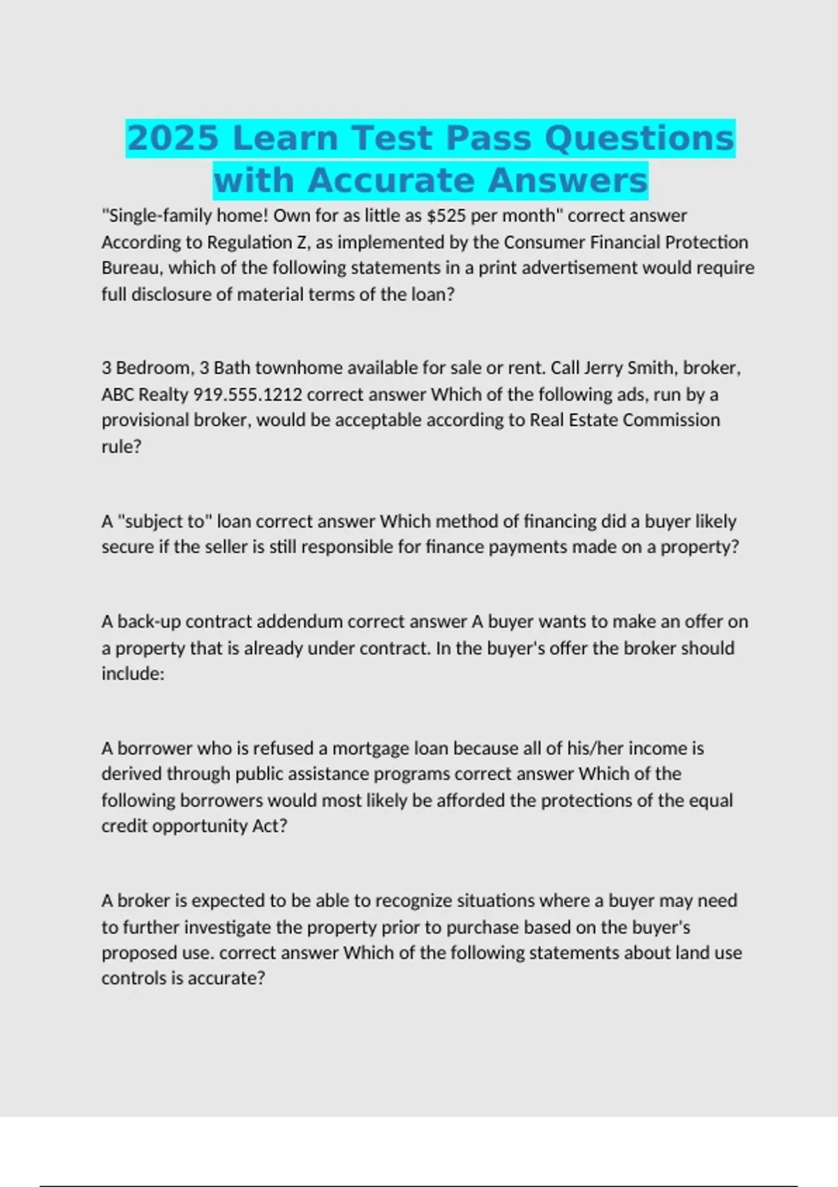 A "subject to" loan correct answer Which method of financing did a buyer likely