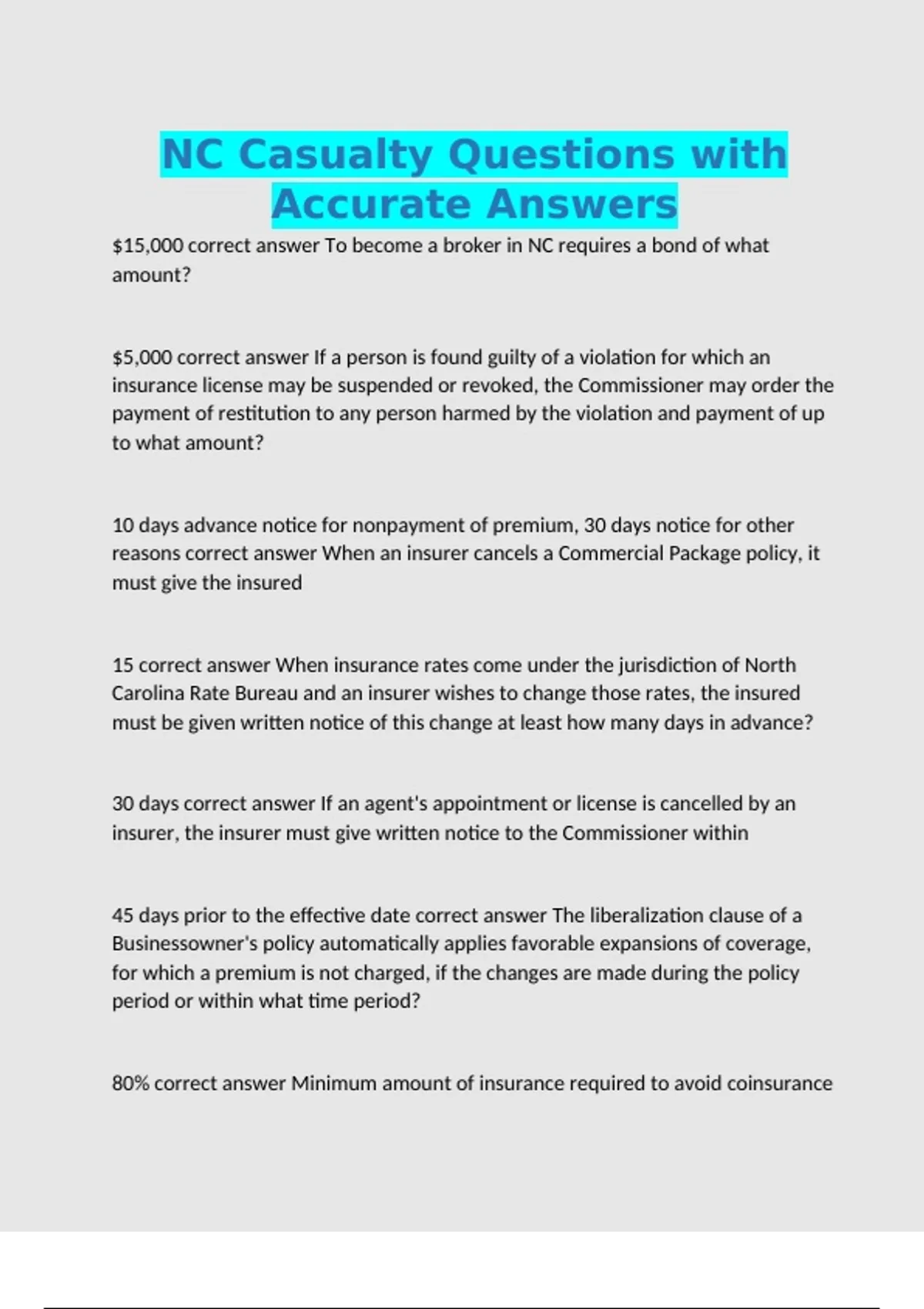 reasons correct answer When an insurer cancels a Commercial Package policy, it