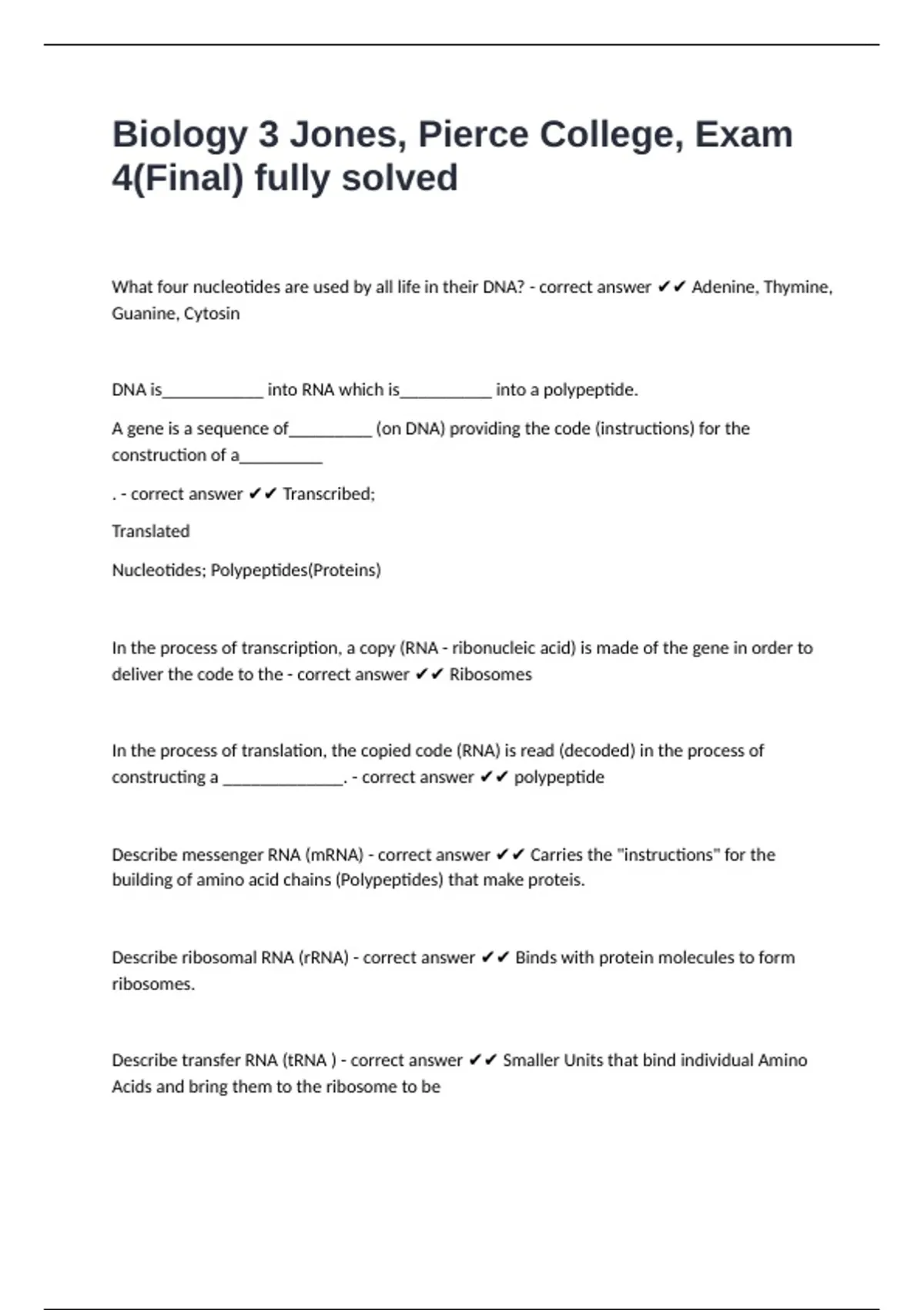 . - correct answer ✔✔ Transcribed;