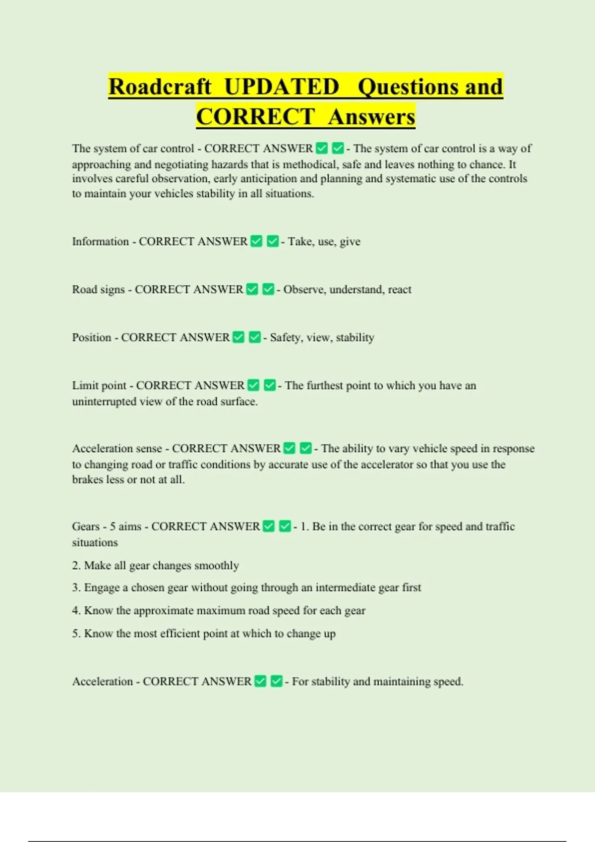 CORRECT Answers