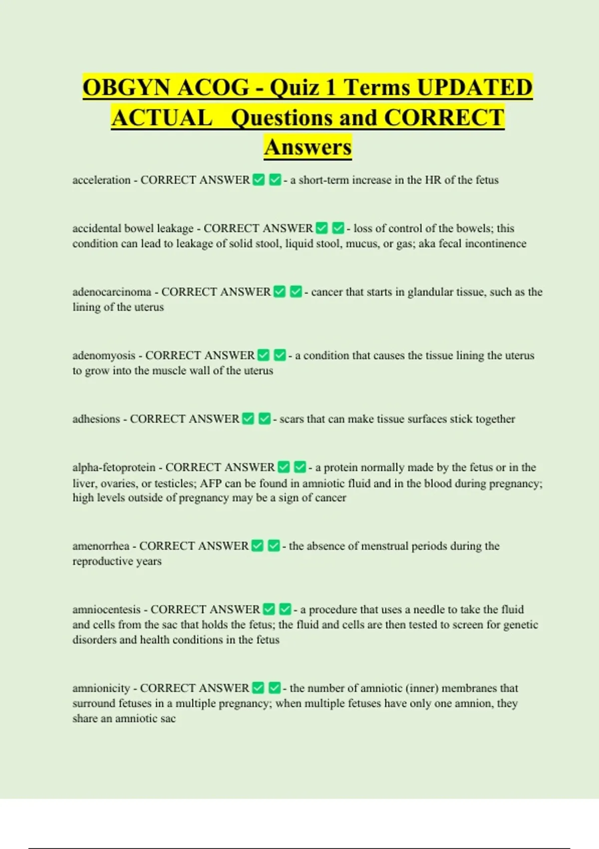 OBGYN ACOG - Quiz 1 Terms UPDATED ACTUAL Questions and CORRECT Answers