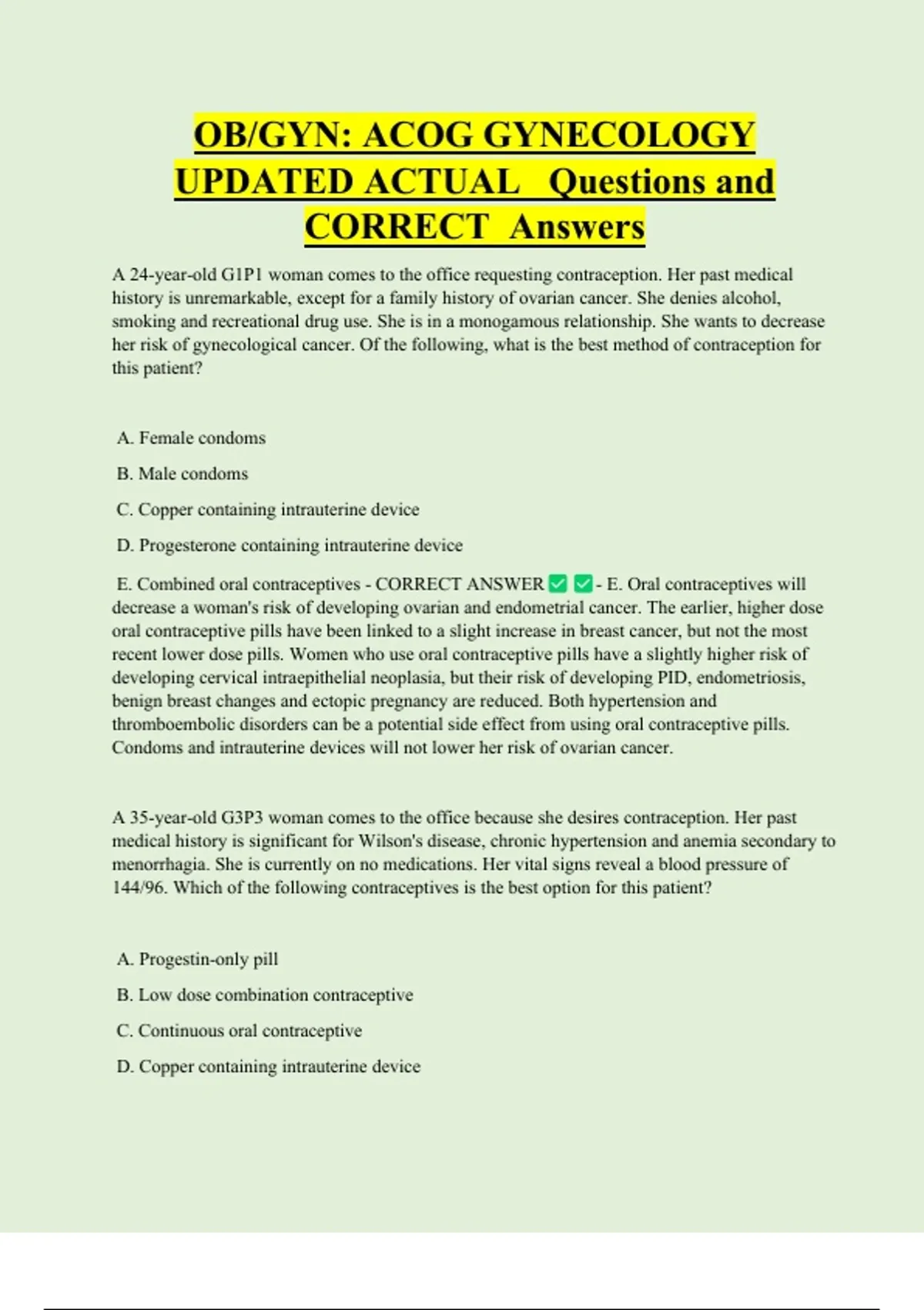 OB/GYN: ACOG GYNECOLOGY UPDATED ACTUAL Questions and CORRECT Answers