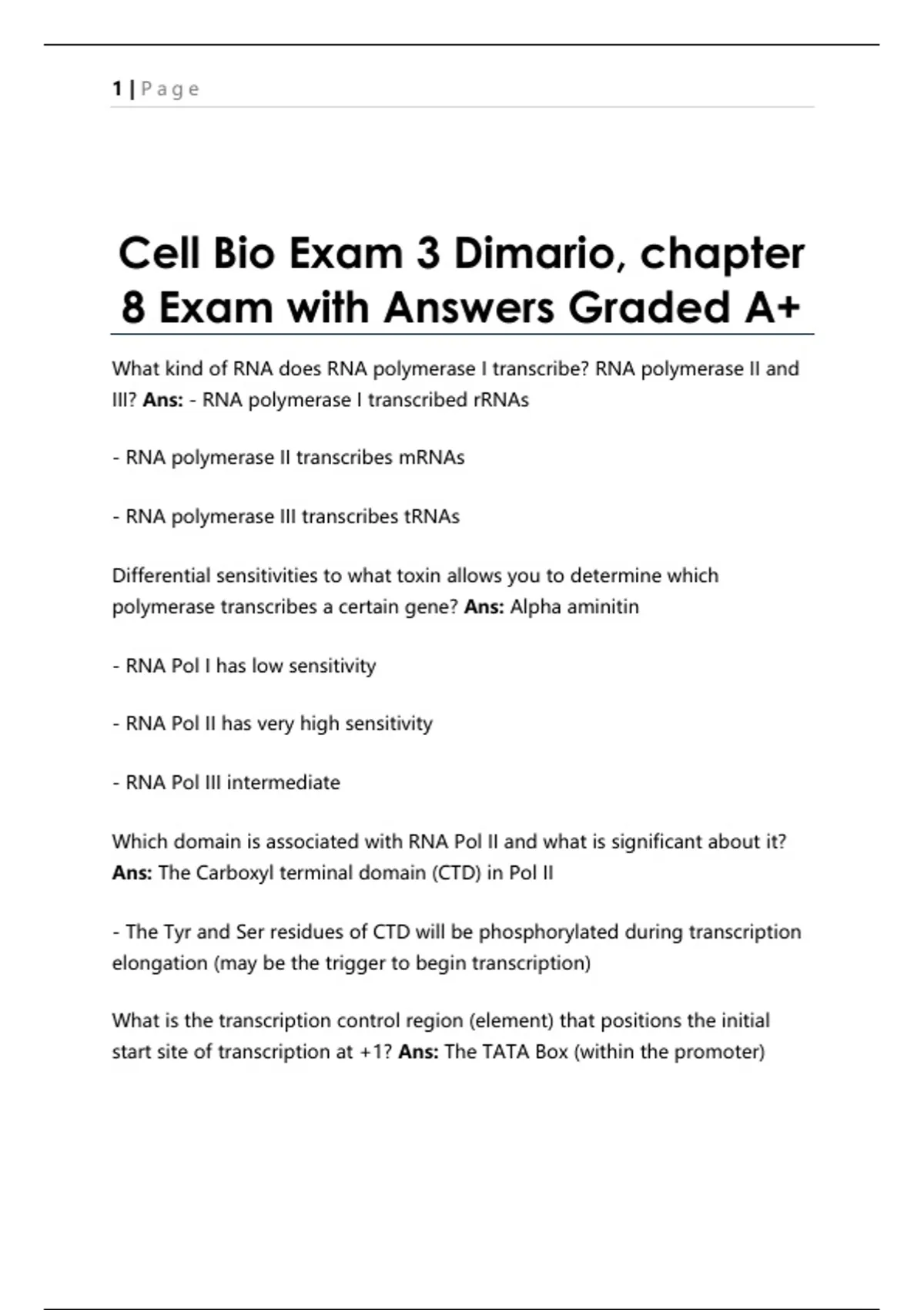 Cell Bio Exam 3 Dimario, chapter 8 Exam with Answers Graded A+