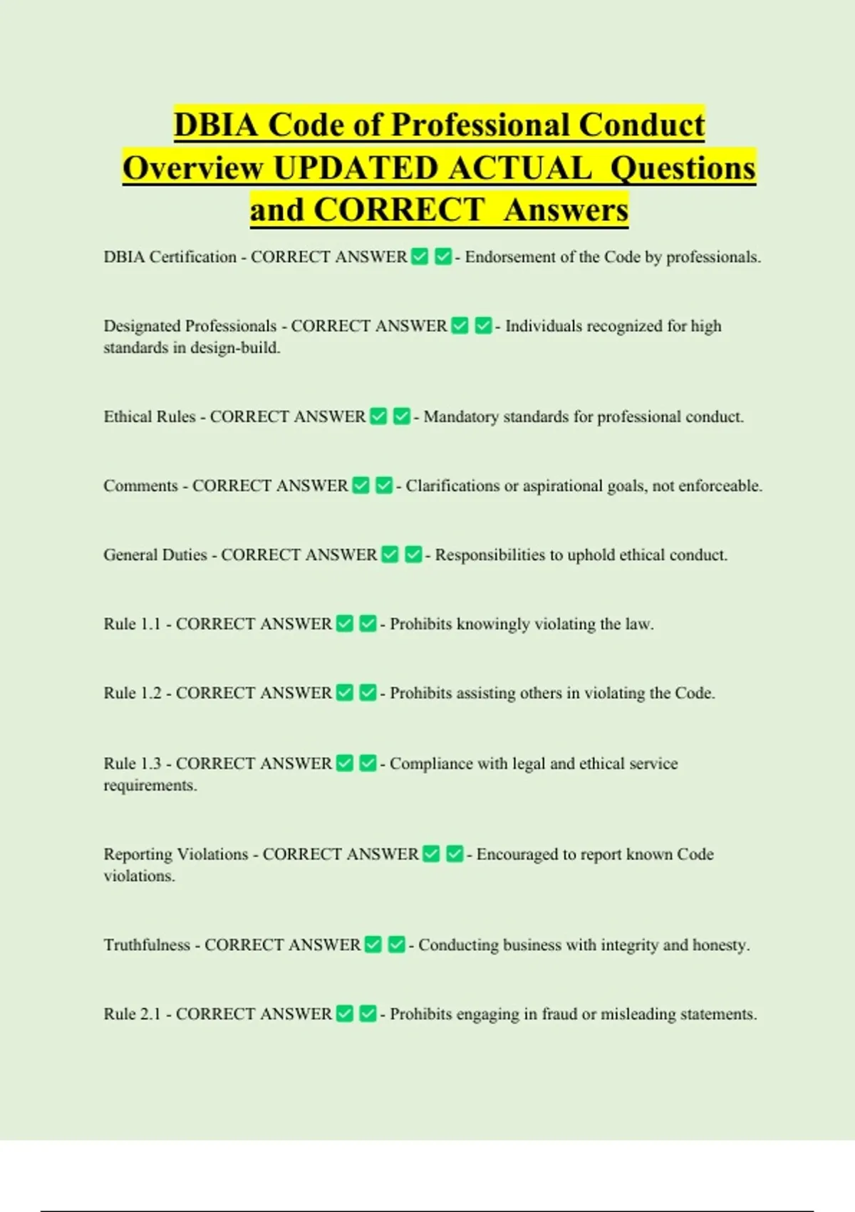 DBIA Certification - CORRECT ANSWER - Endorsement of the Code by professionals.