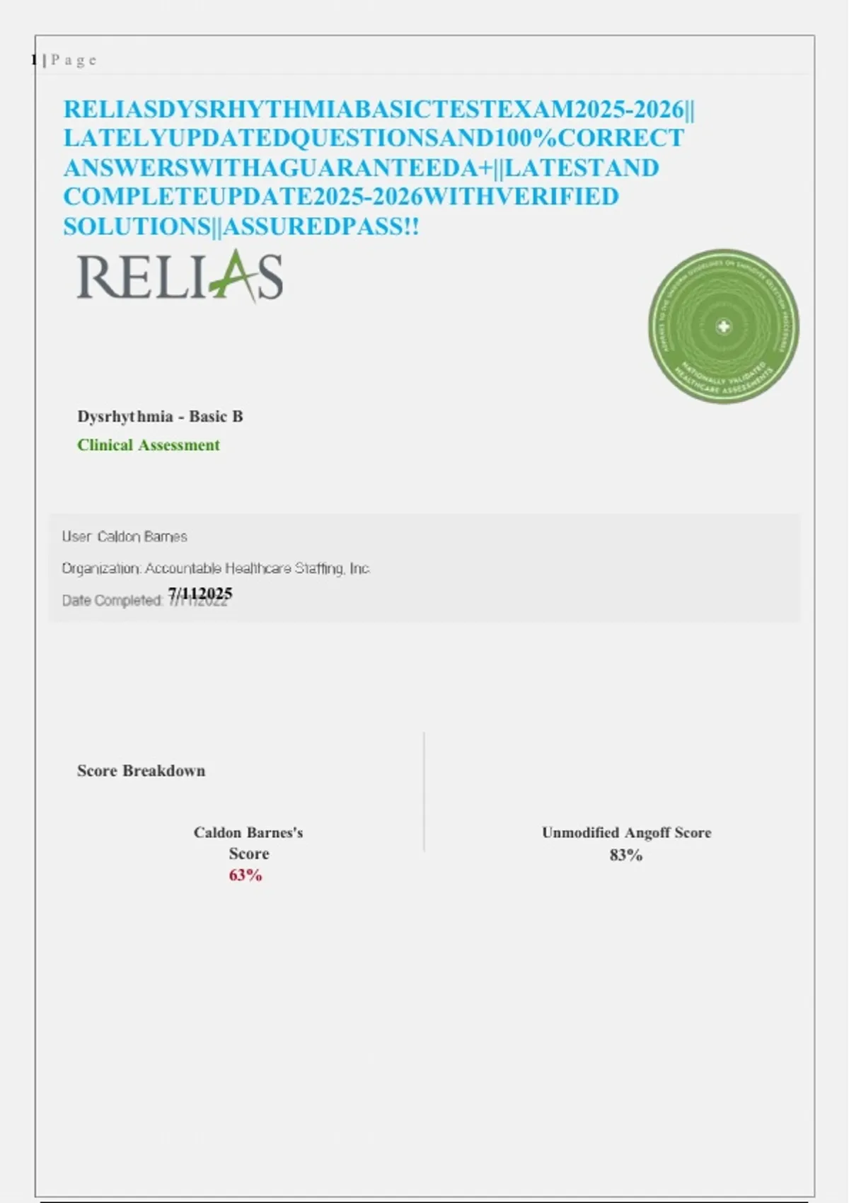 RELIASDYSRHYTHMIABASICTESTEXAM2025-2026||
