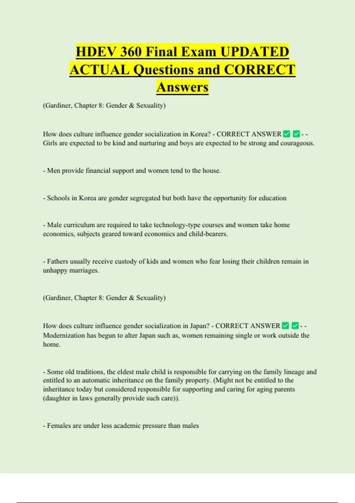 How does culture influence gender socialization in Korea? - CORRECT ANSWER --