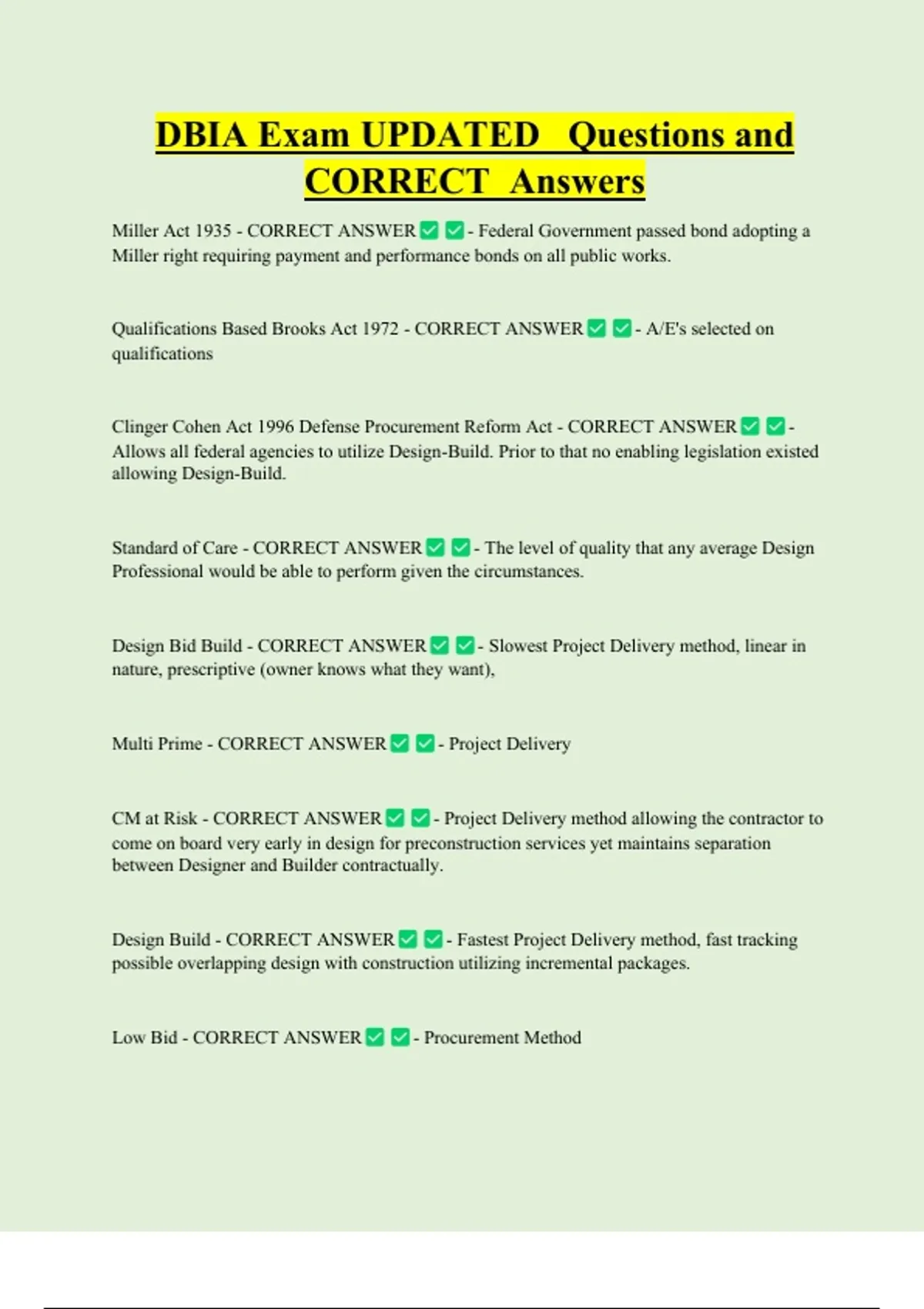 CORRECT Answers