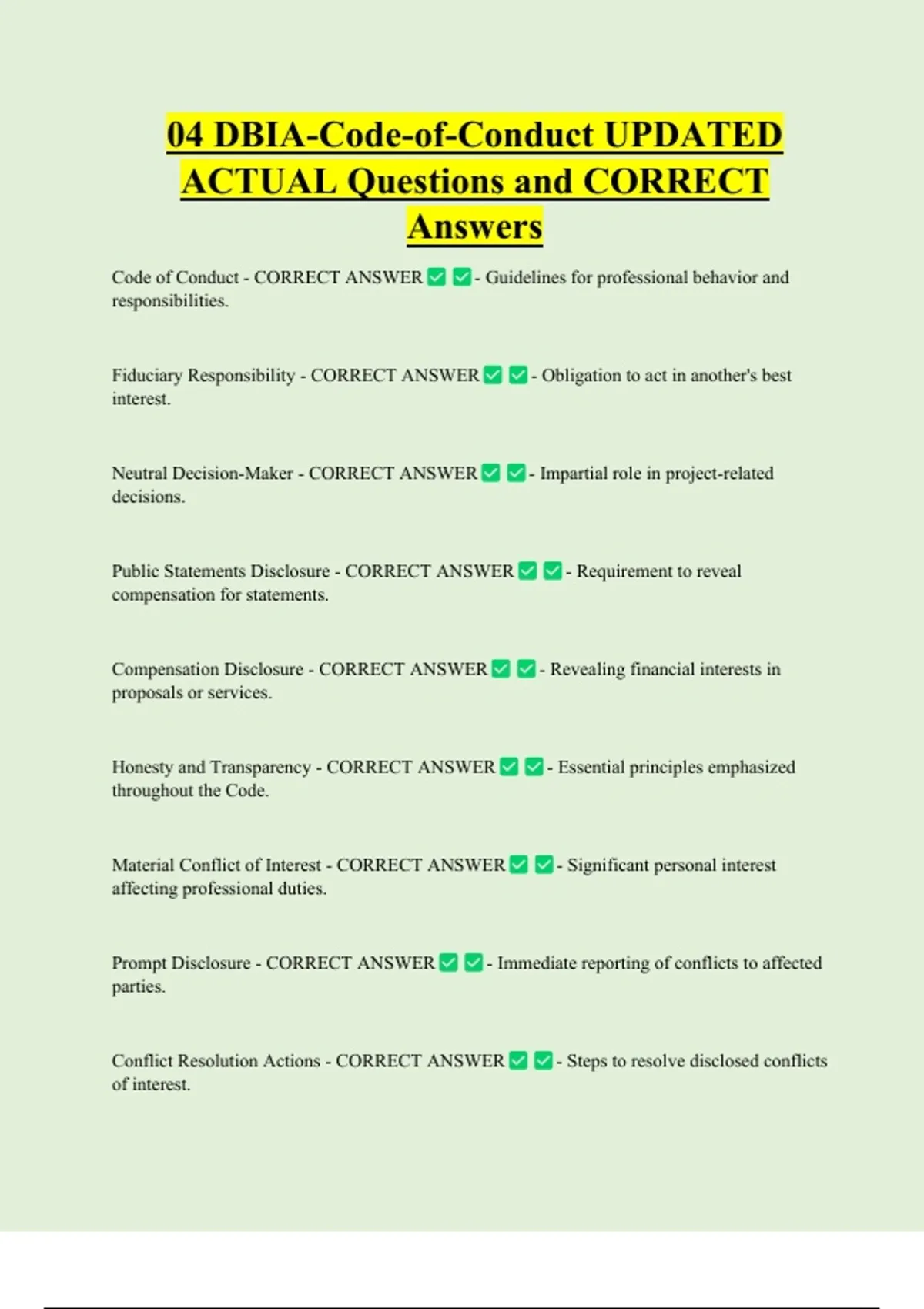 04 DBIA-Code-of-Conduct UPDATED ACTUAL Questions and CORRECT Answers