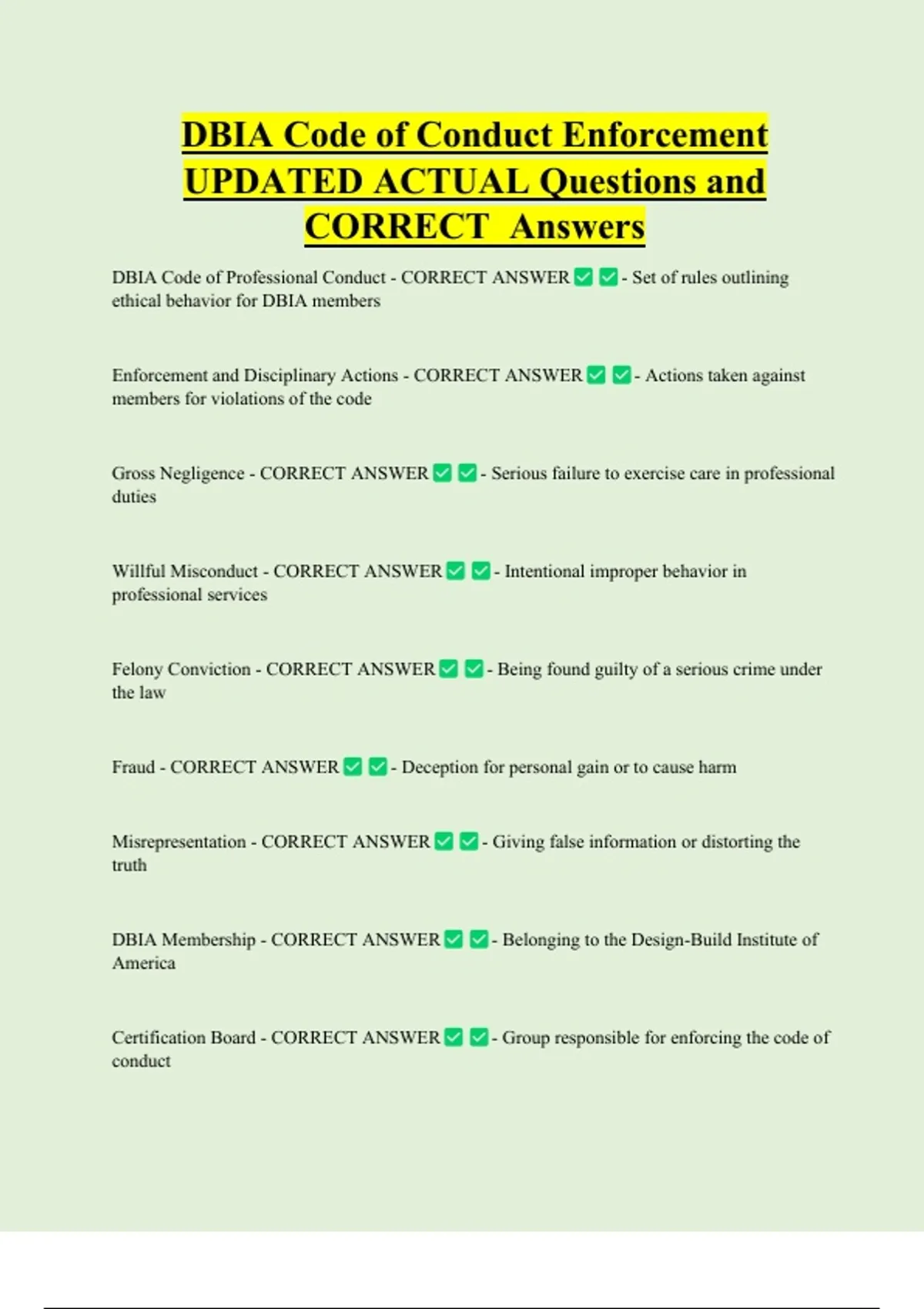 DBIA Code of Conduct Enforcement UPDATED ACTUAL Questions and CORRECT Answers