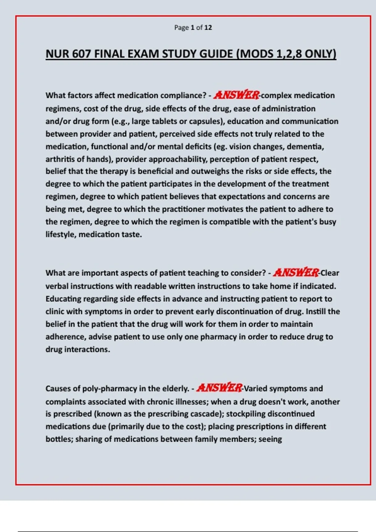 NUR 607 FINAL EXAM STUDY GUIDE (MODS 1,2,8 ONLY)
