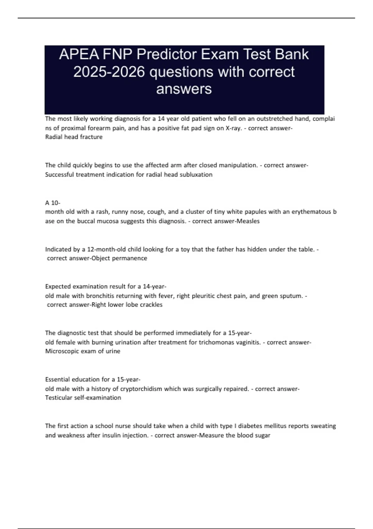APEA FNP Predictor Exam Test Bank questions with correct answers