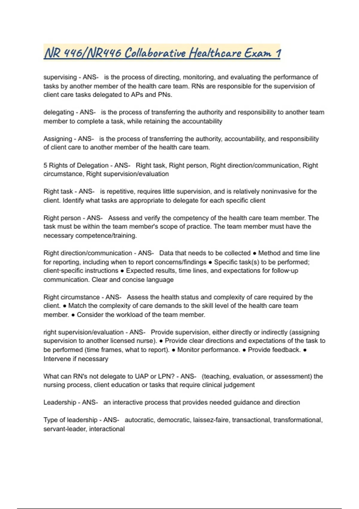 NR 446/NR446 Collaborative Healthcare Exam 1