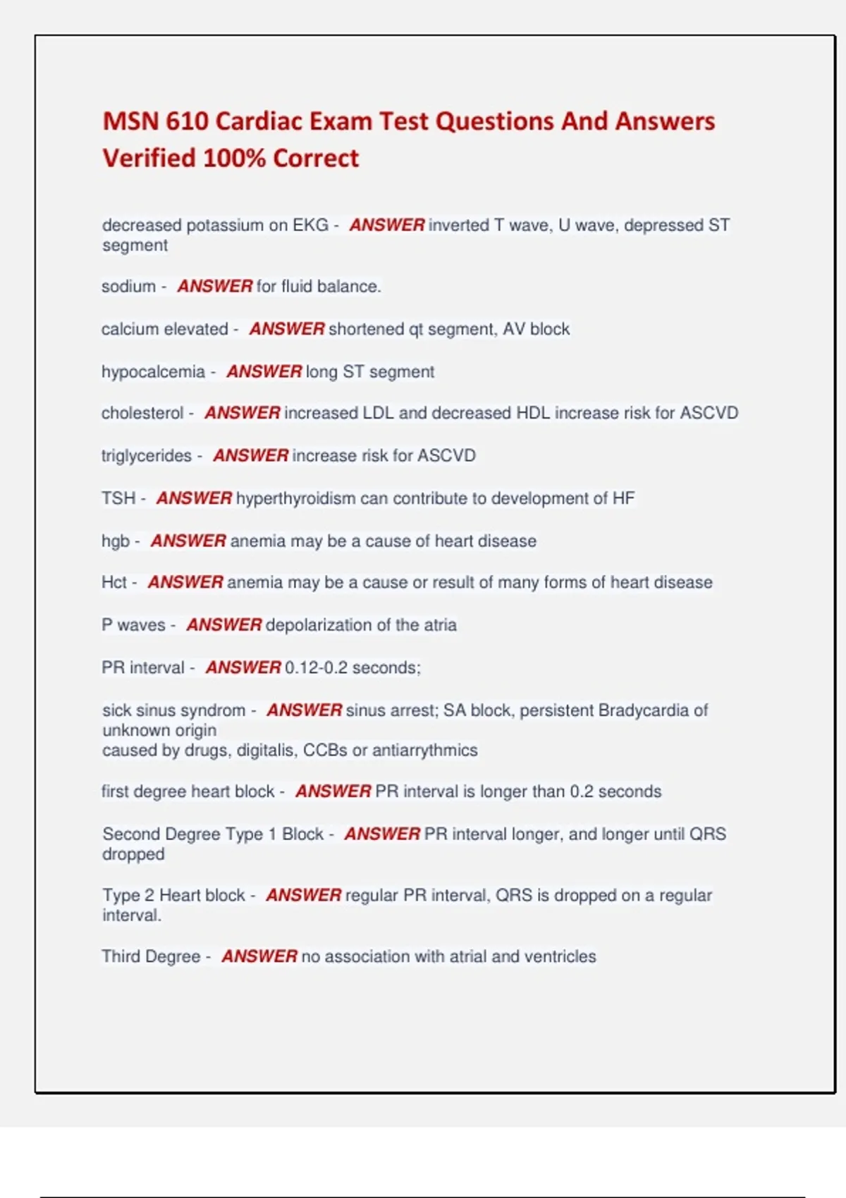 Hct - ANSWER anemia may be a cause or result of many forms of heart disease