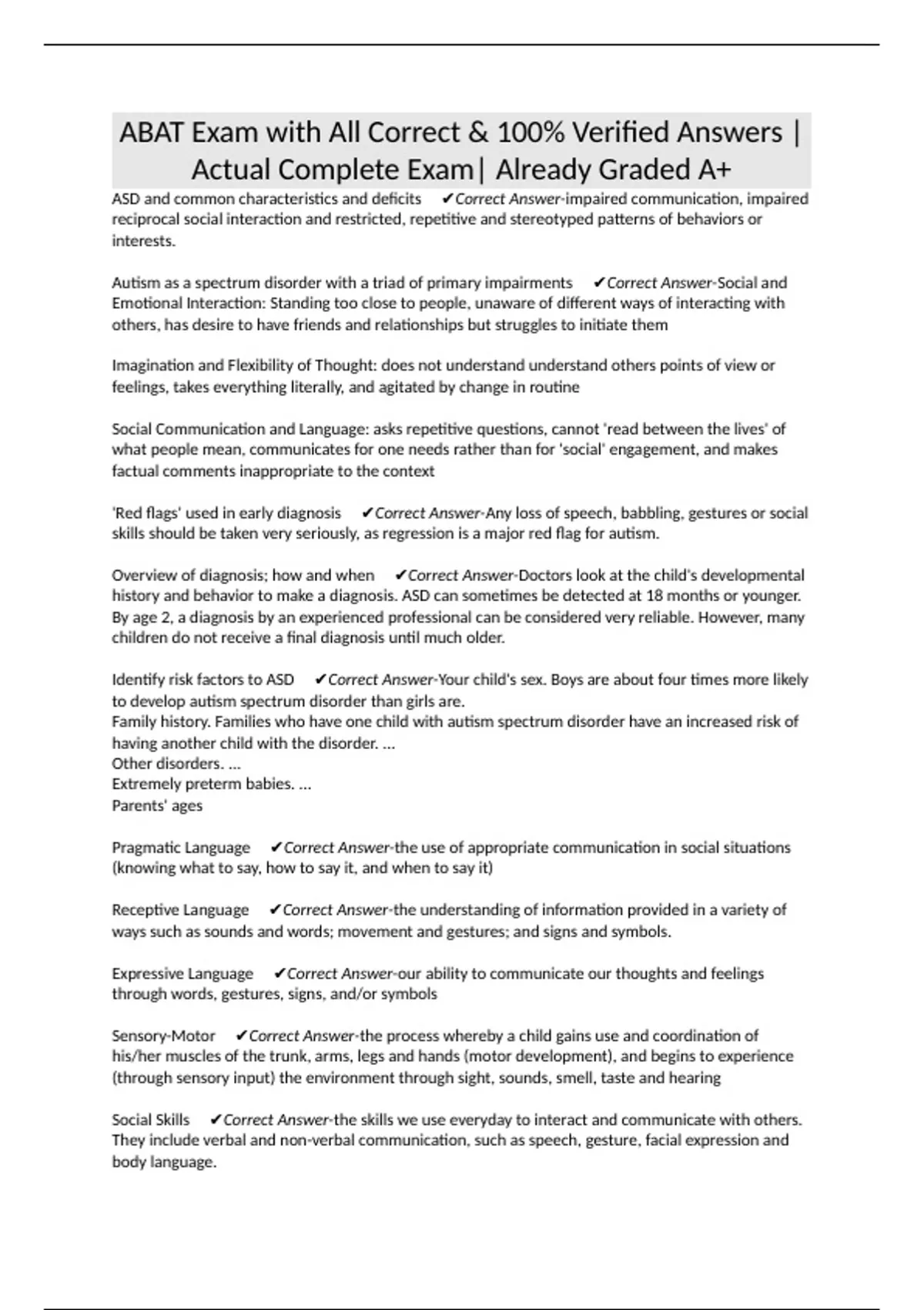 ABAT Exam with All Correct & 100% Verified Answers |Actual Complete Exam| Already Graded A+