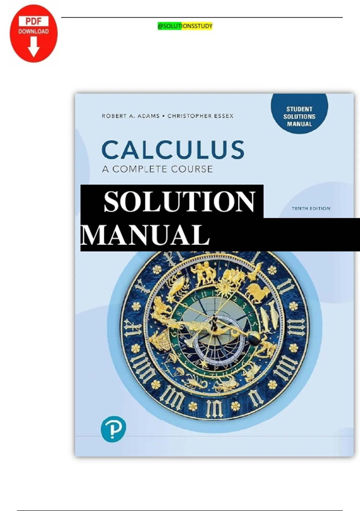 Struggling with Calculus: A Complete Course, 10th Edition by Adams & Essex? This Student Solutions Manual PDF provides step-by-step solutions to all textbook exercises, making complex calculus concepts easy to understand. Each problem is worked out with detailed explanations, showing every step so you can learn the process, not just the answer. Perfect for high school, college, or university students, this manual covers limits, derivatives, integrals, series, multivariable calculus, and more. Whether you’re completing homework, preparing for exams, or reviewing concepts, this manual will save study time, reduce stress, and boost confidence in solving calculus problems. WHAT’S INCLUDED Complete step-by-step solutions for all textbook problems Covers all chapters, from limits and derivatives to multivariable calculus and series Clear and easy-to-follow layout Searchable PDF for fast navigation Ideal for homework, exams, or self-study WHO IT HELPS High school and university students Students taking Calculus courses Anyone wanting clear worked examples and step-by-step explanations
