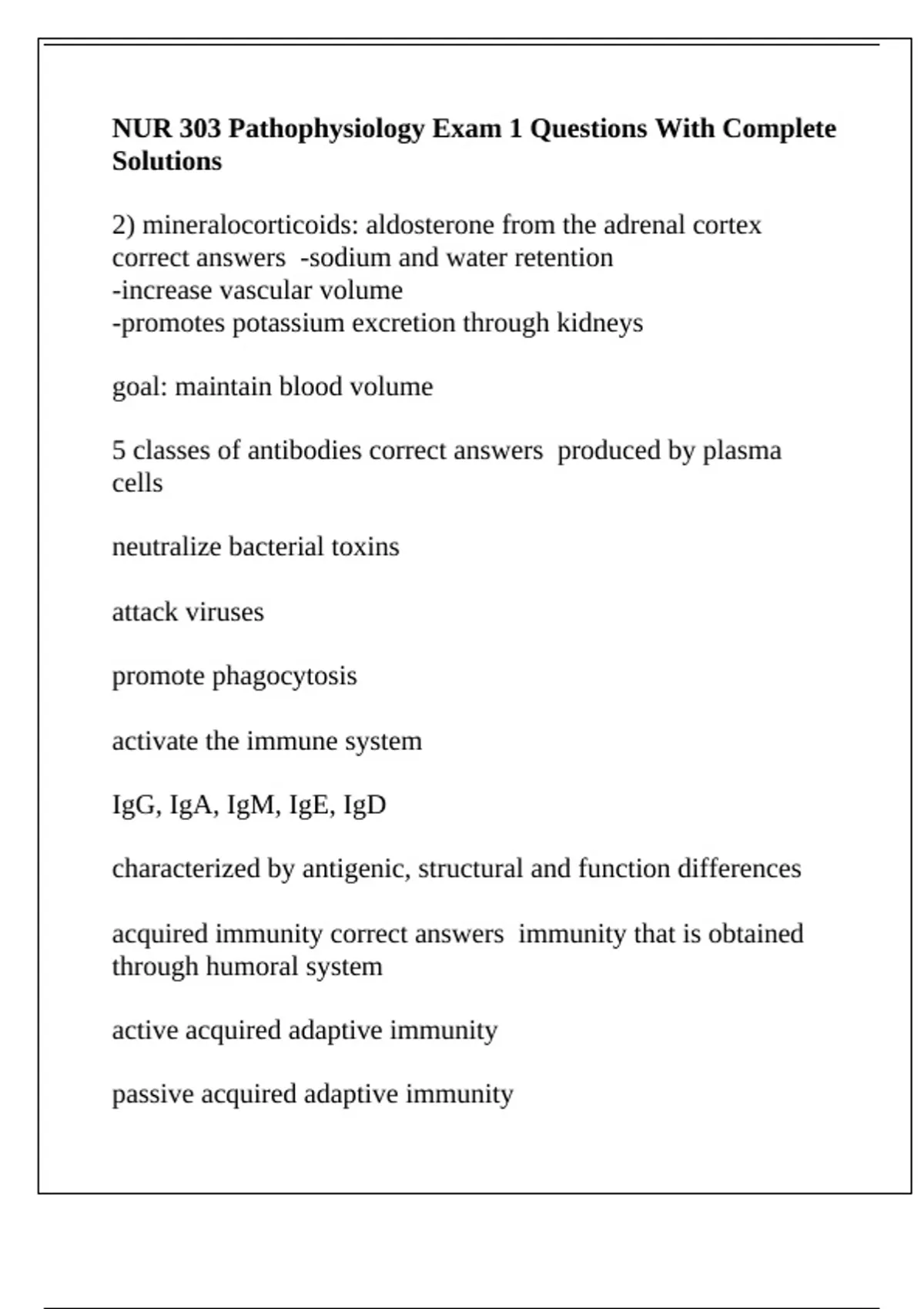 acquired immunity correct answers immunity that is obtained