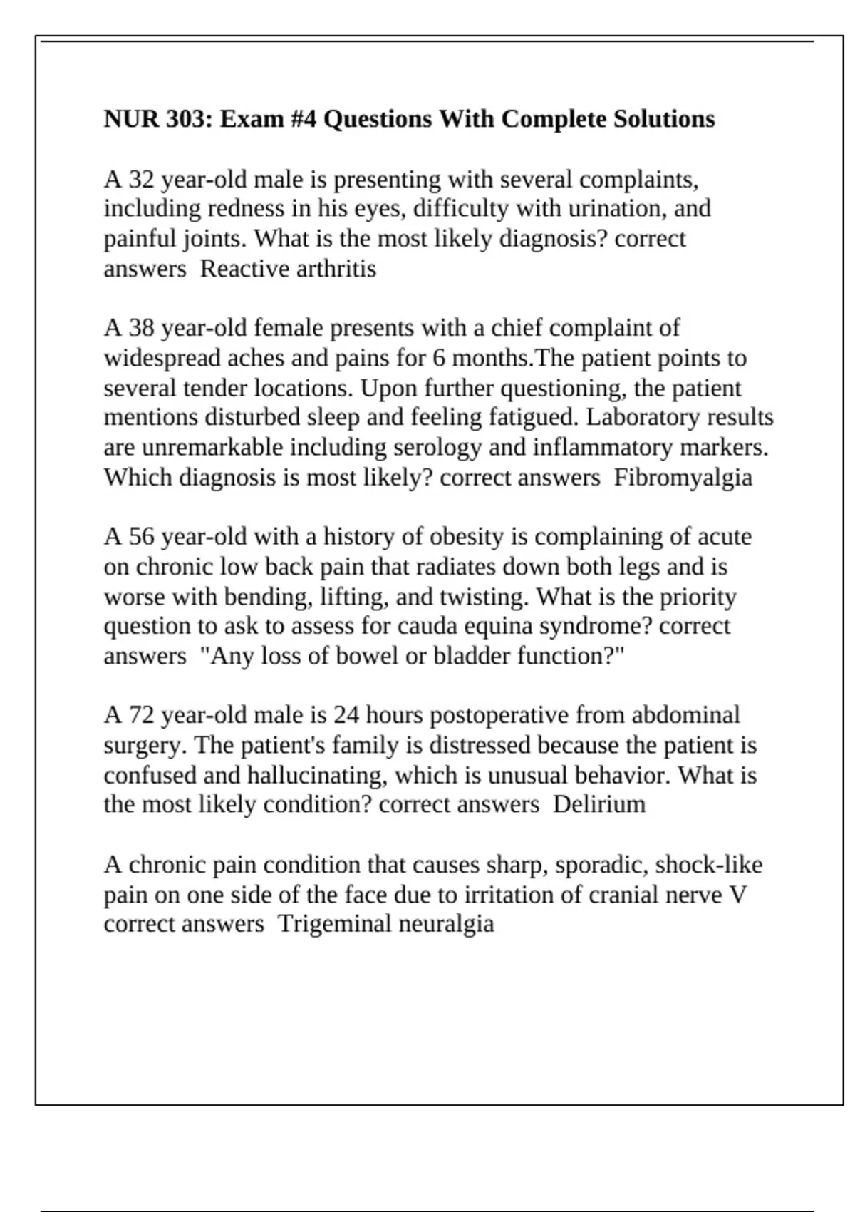 correct answers Trigeminal neuralgia