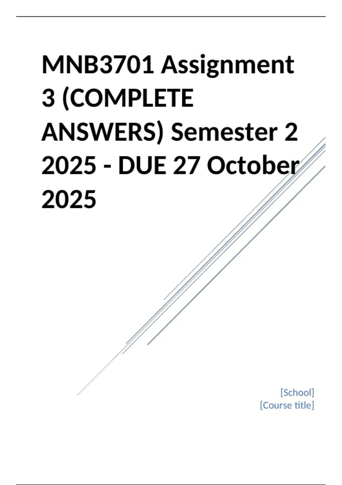 MNB3701 Assignment 3 (COMPLETE ANSWERS) Semester 2 2025 - DUE 27 October 2025;