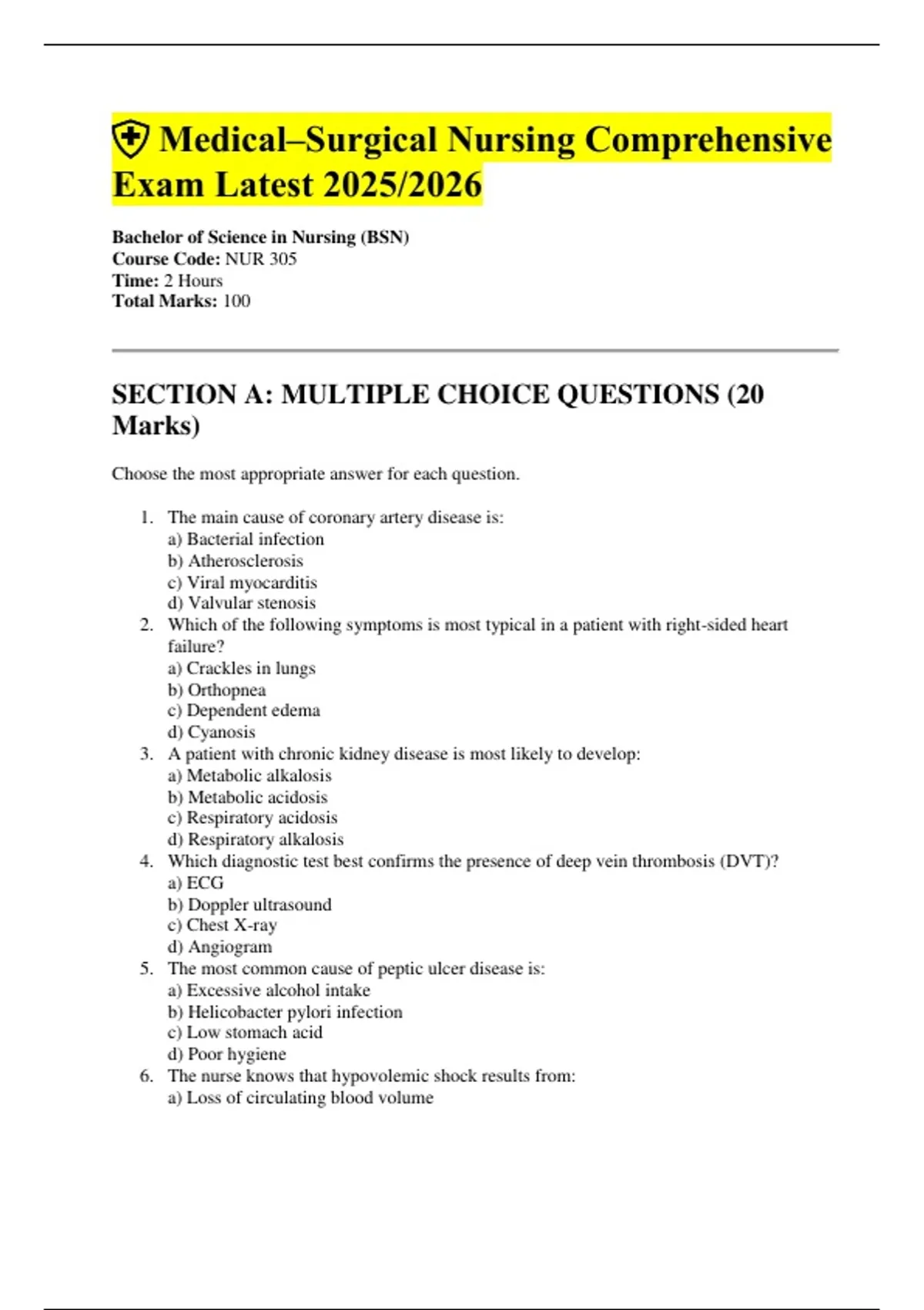 Medical–Surgical Nursing Comprehensive Exam Latest 2025/2026