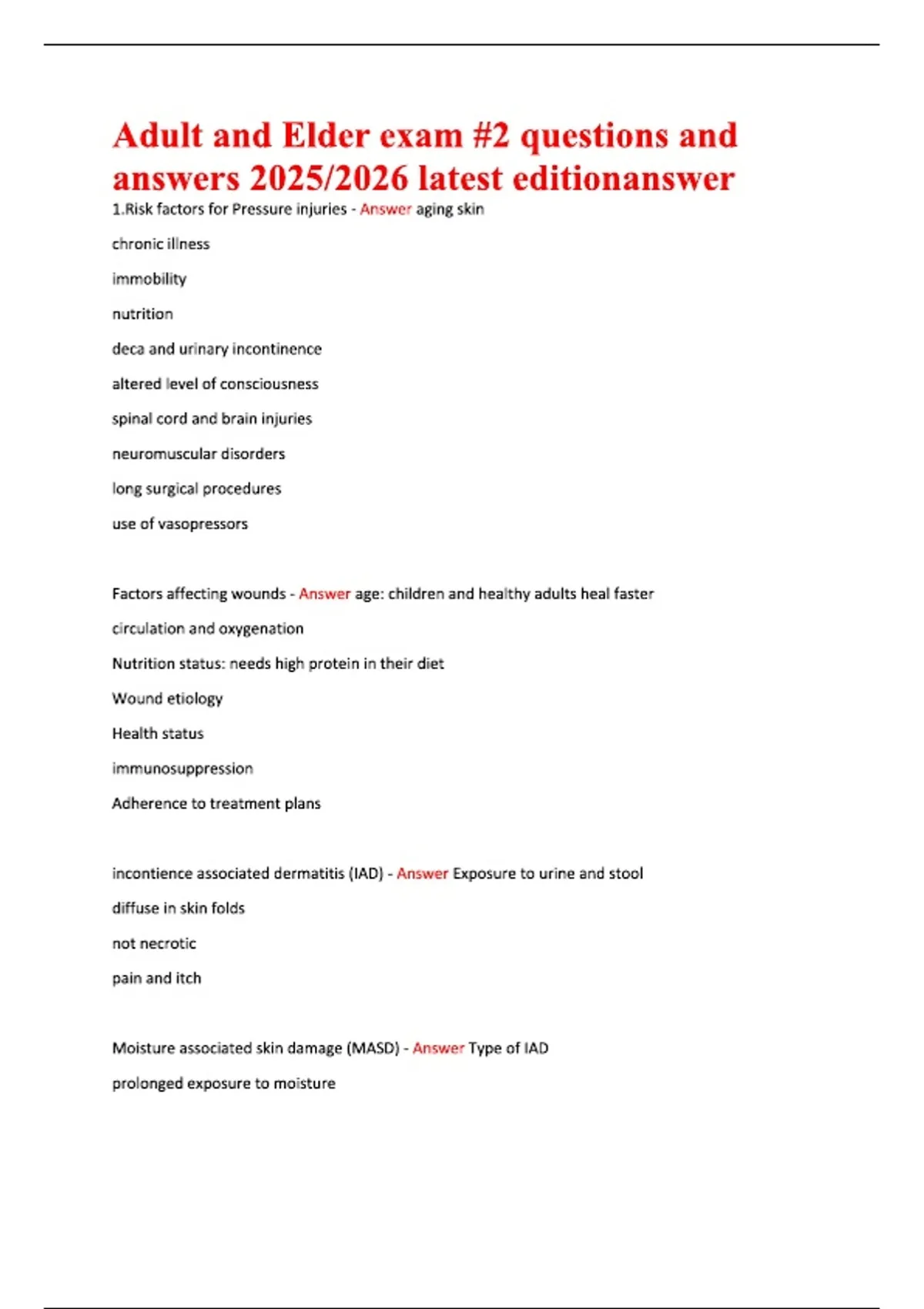 Adult and Elder exam #2 questions and answers 2025/2026 latest editionanswer