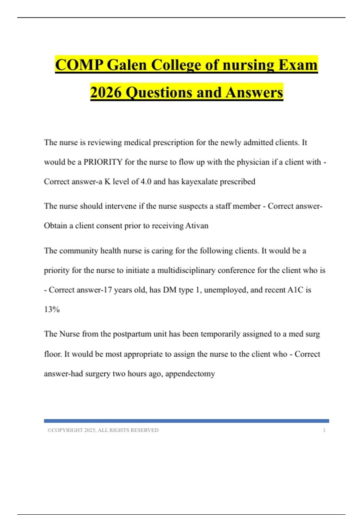 COMP Galen College of nursing Exam