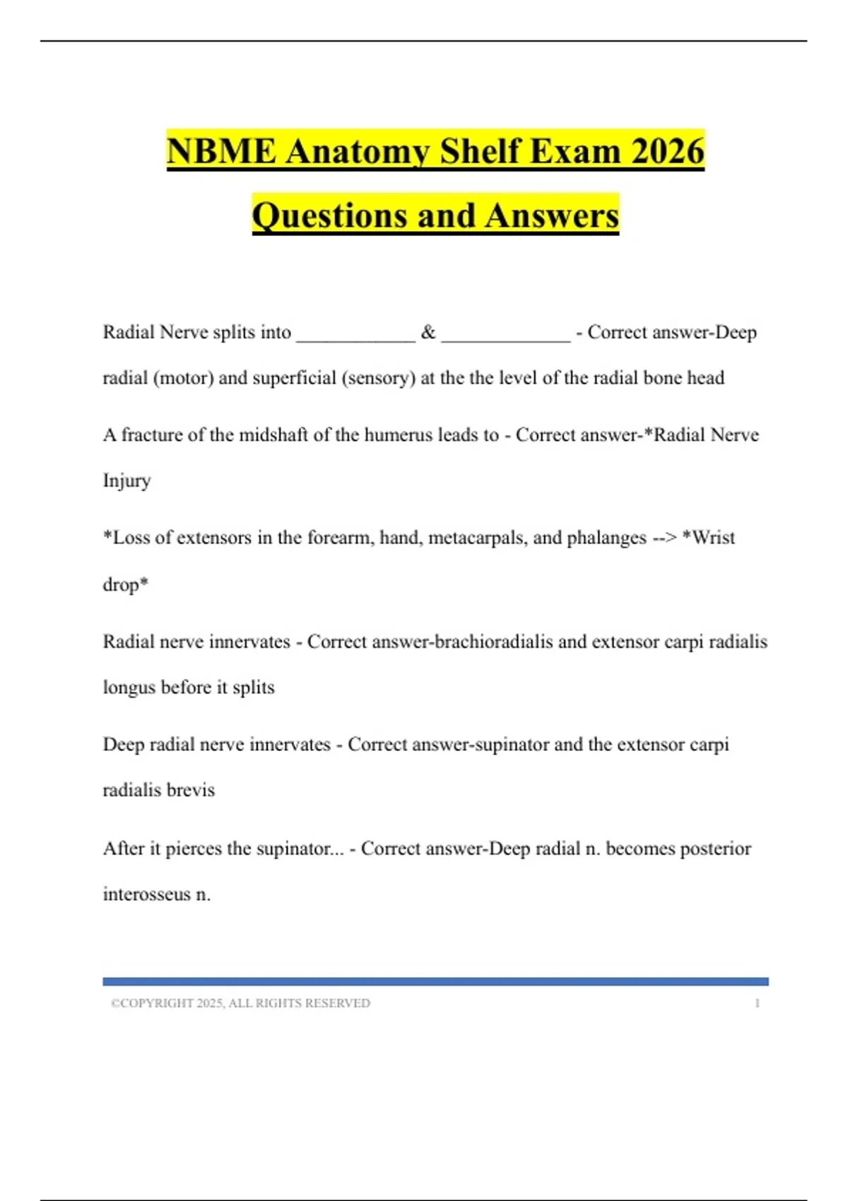 NBME Anatomy Shelf Exam 2026 Questions and Answers
