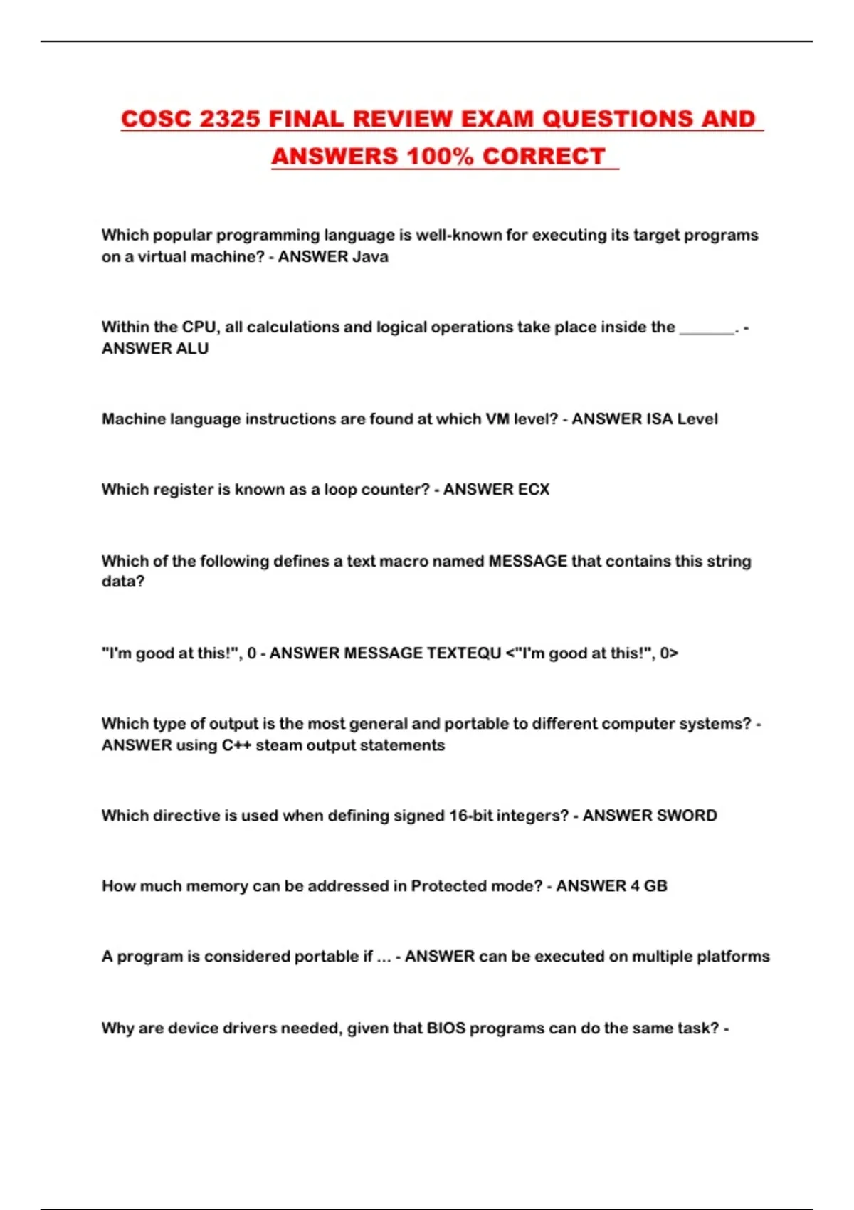 COSC 2325 FINAL REVIEW EXAM QUESTIONS AND