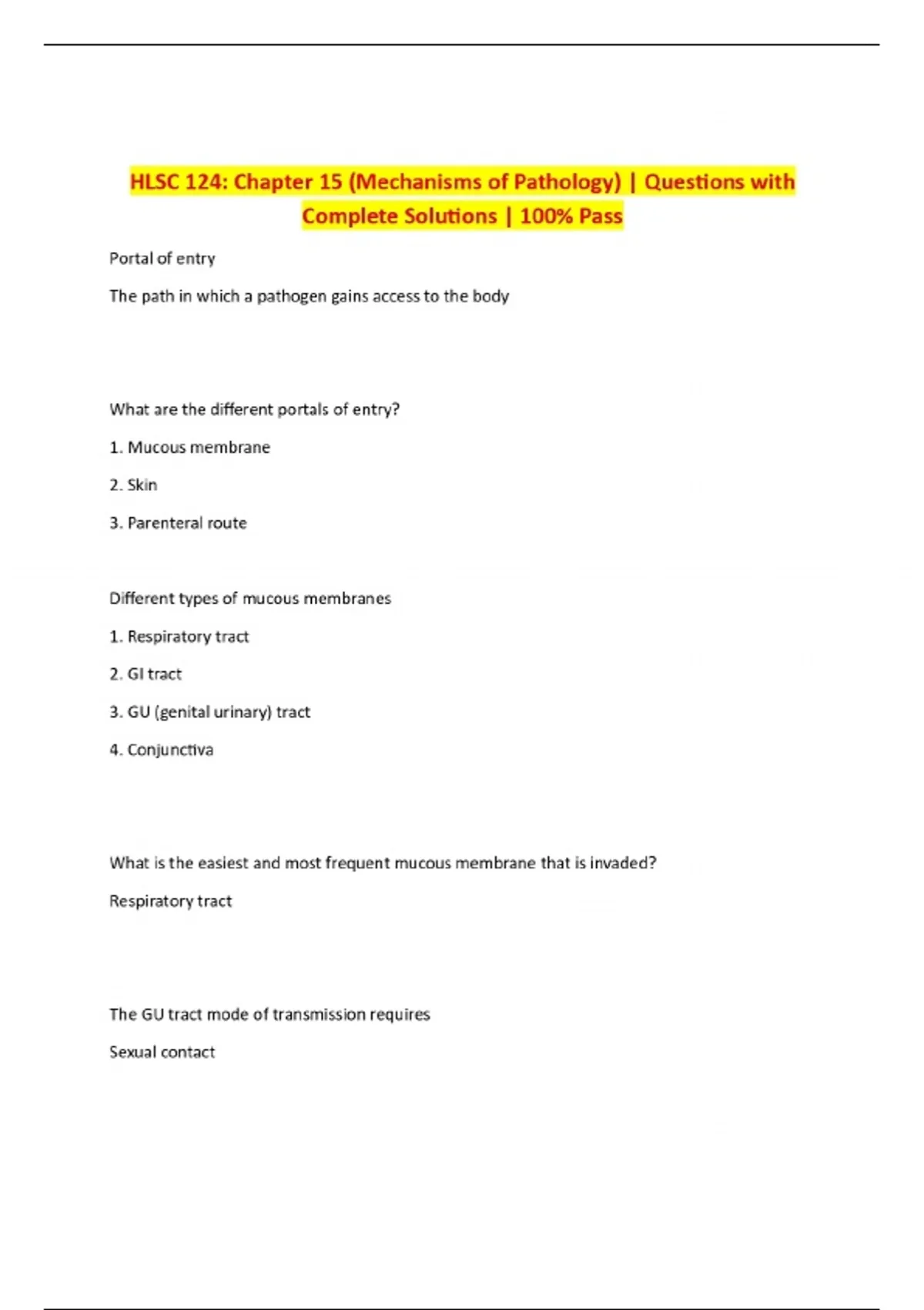 BUNDLE FOR HLSC 124 EXAM ALL Questions with Complete Solutions