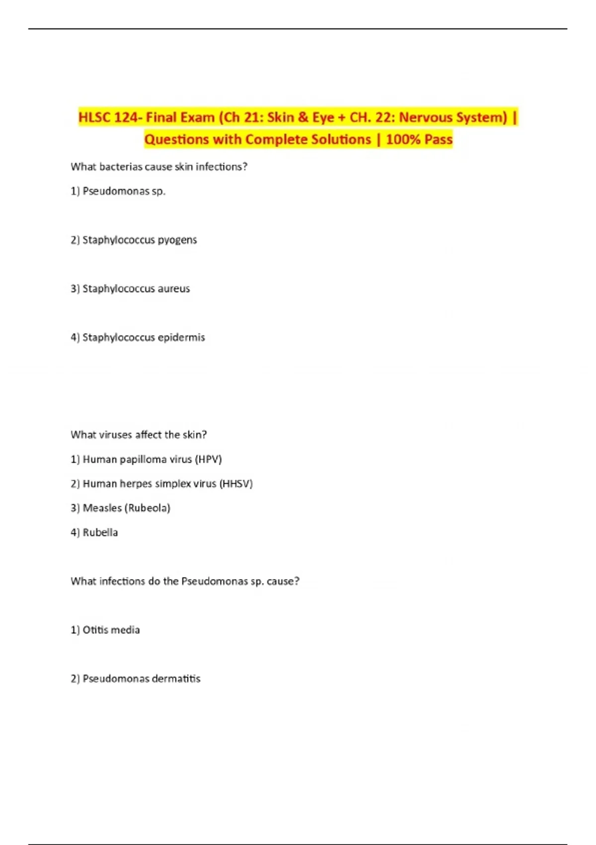 BUNDLE FOR HLSC 124 EXAM ALL Questions with Complete Solutions