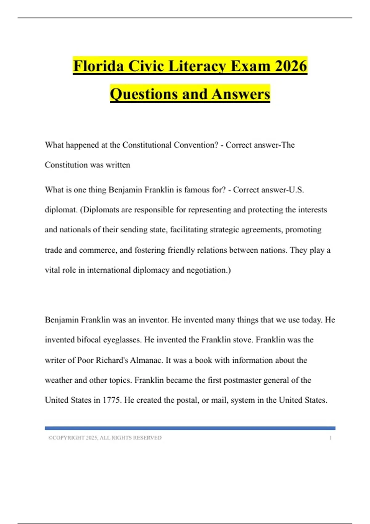 Florida Civic Literacy Exam 2026