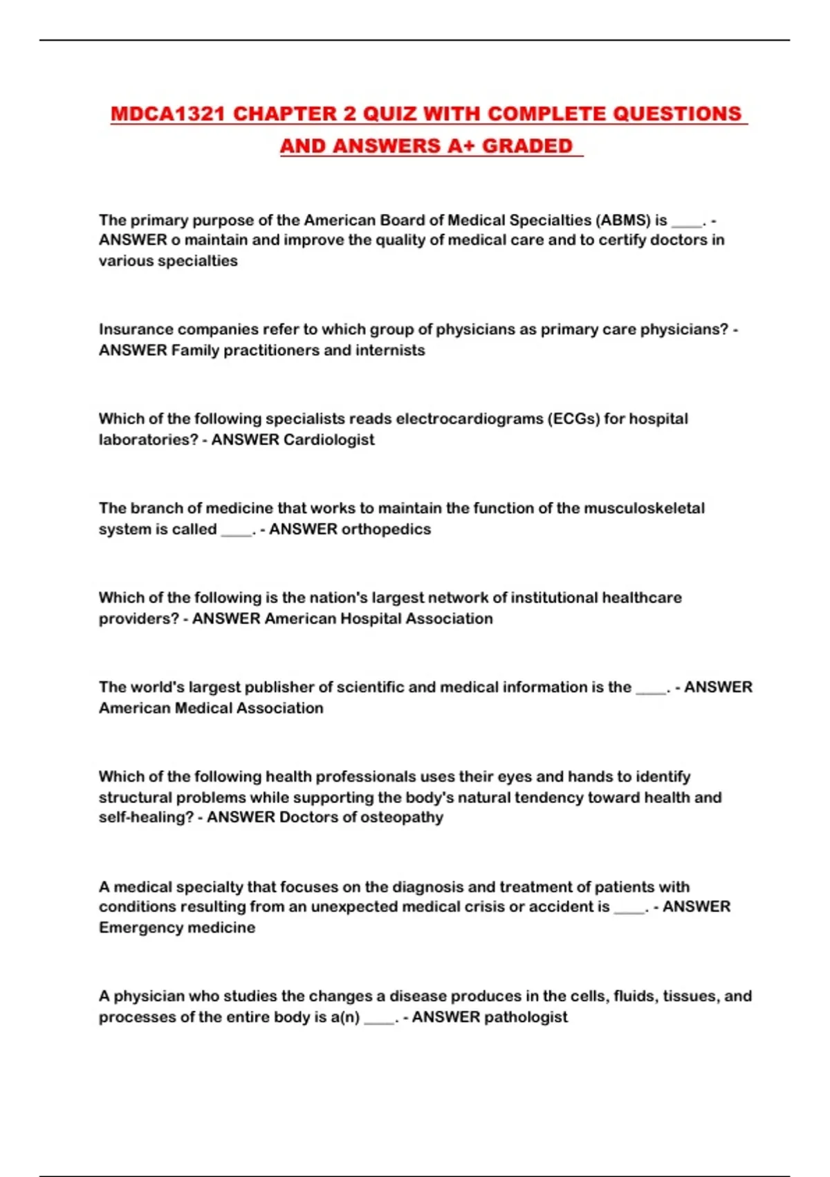 MDCA1321 CHAPTER 2 QUIZ WITH COMPLETE QUESTIONS