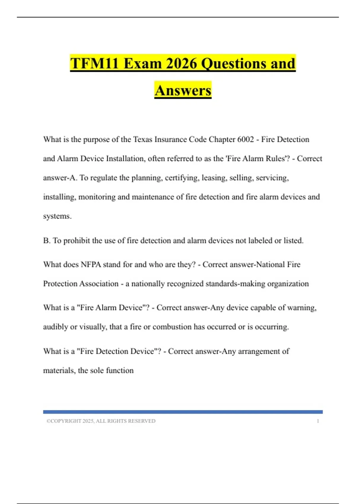 TFM11 Exam 2026 Questions and